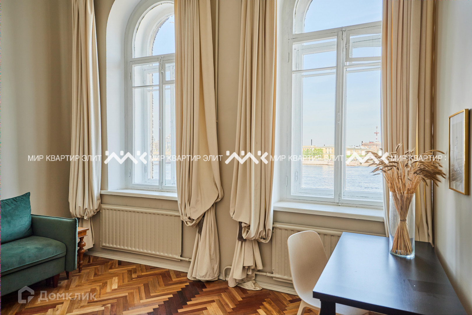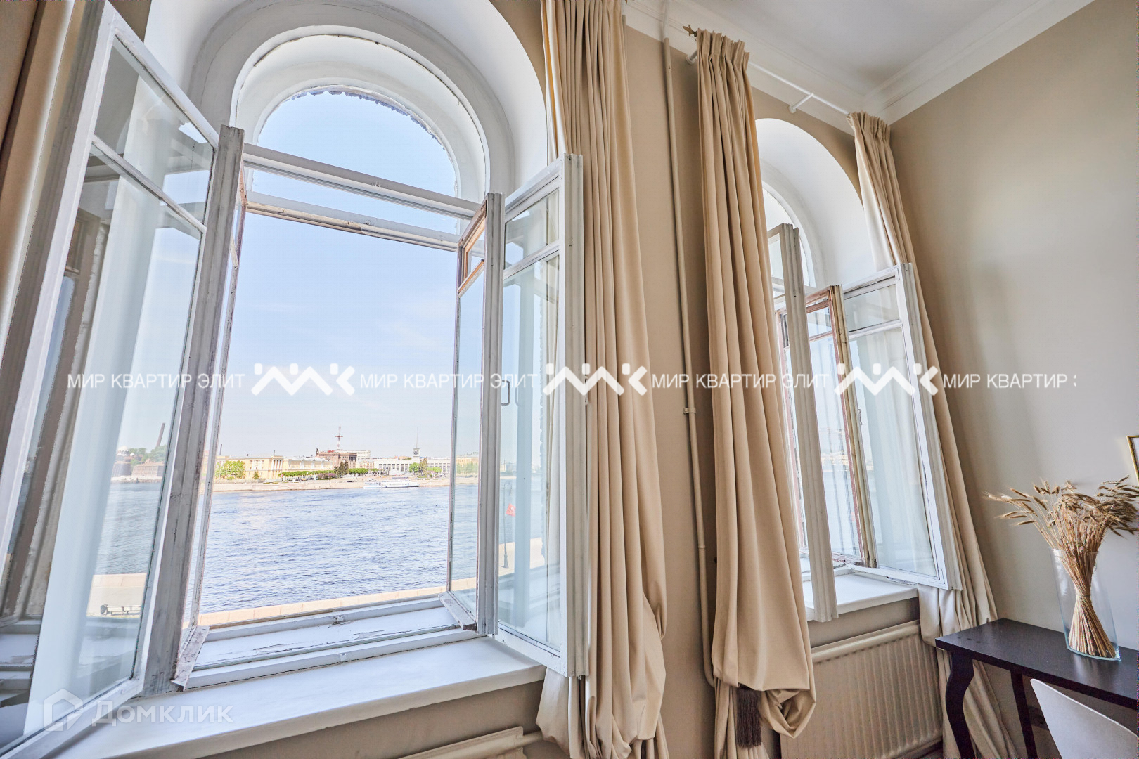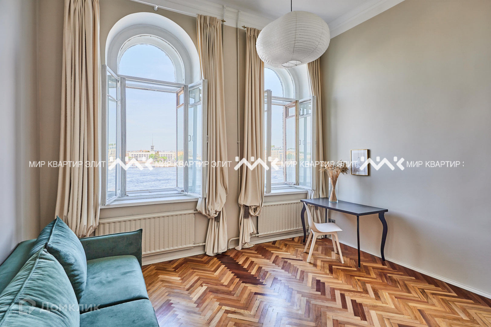 -Из любого места в  квартире видно или воду или динамичное небо. Ночью из окон можно наблюдать развод Литейного моста.