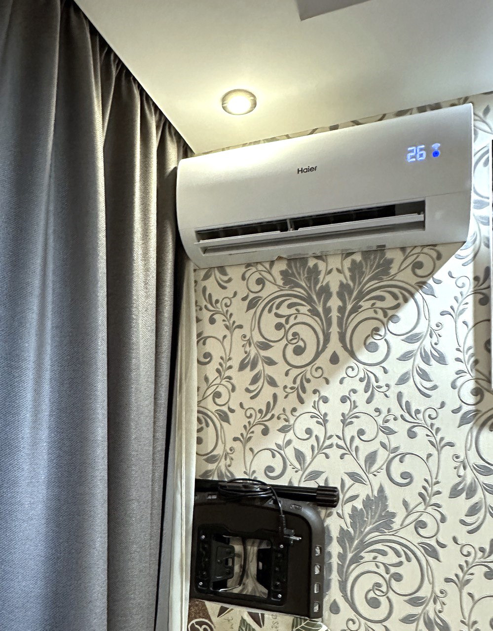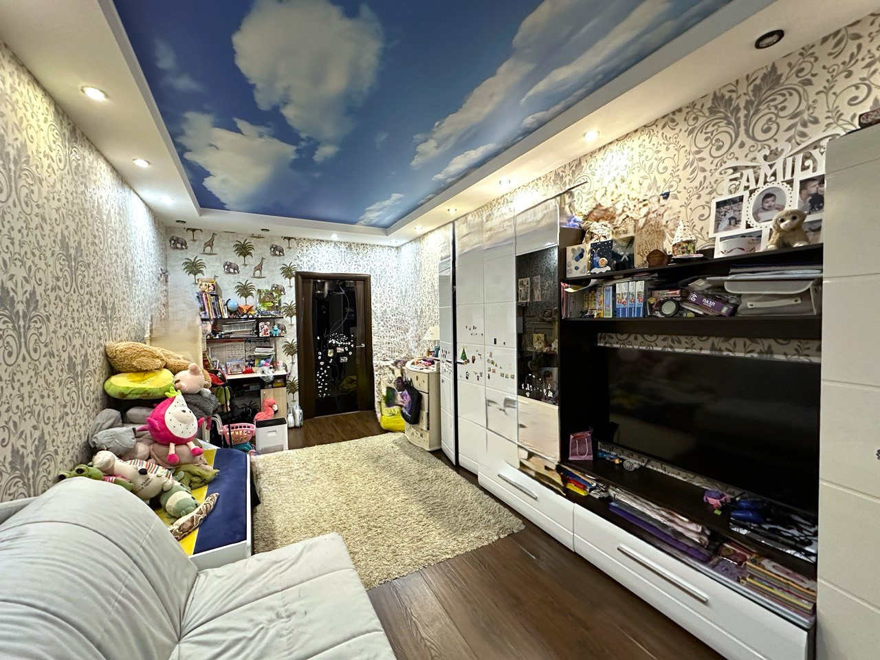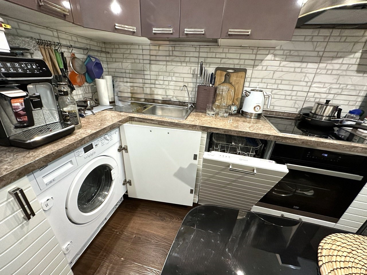 В квартире остается основная часть мебели и техники, а именно: Кухня со встроенной техникой (варочная поверхность, духовой шкаф, посудомойка, стиральная машина, вытяжка), мебель в комнате, кондиционер и даже телевизор.