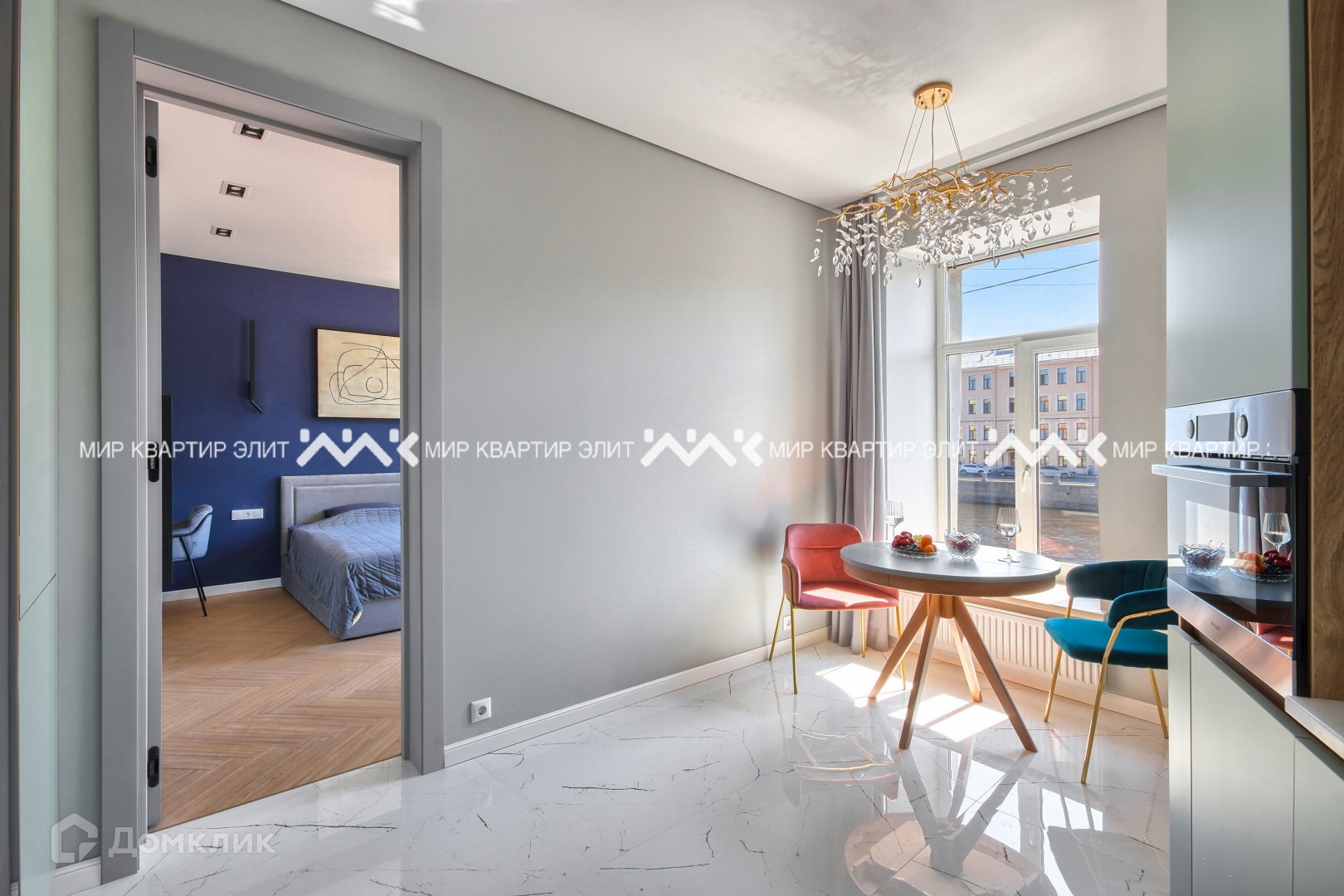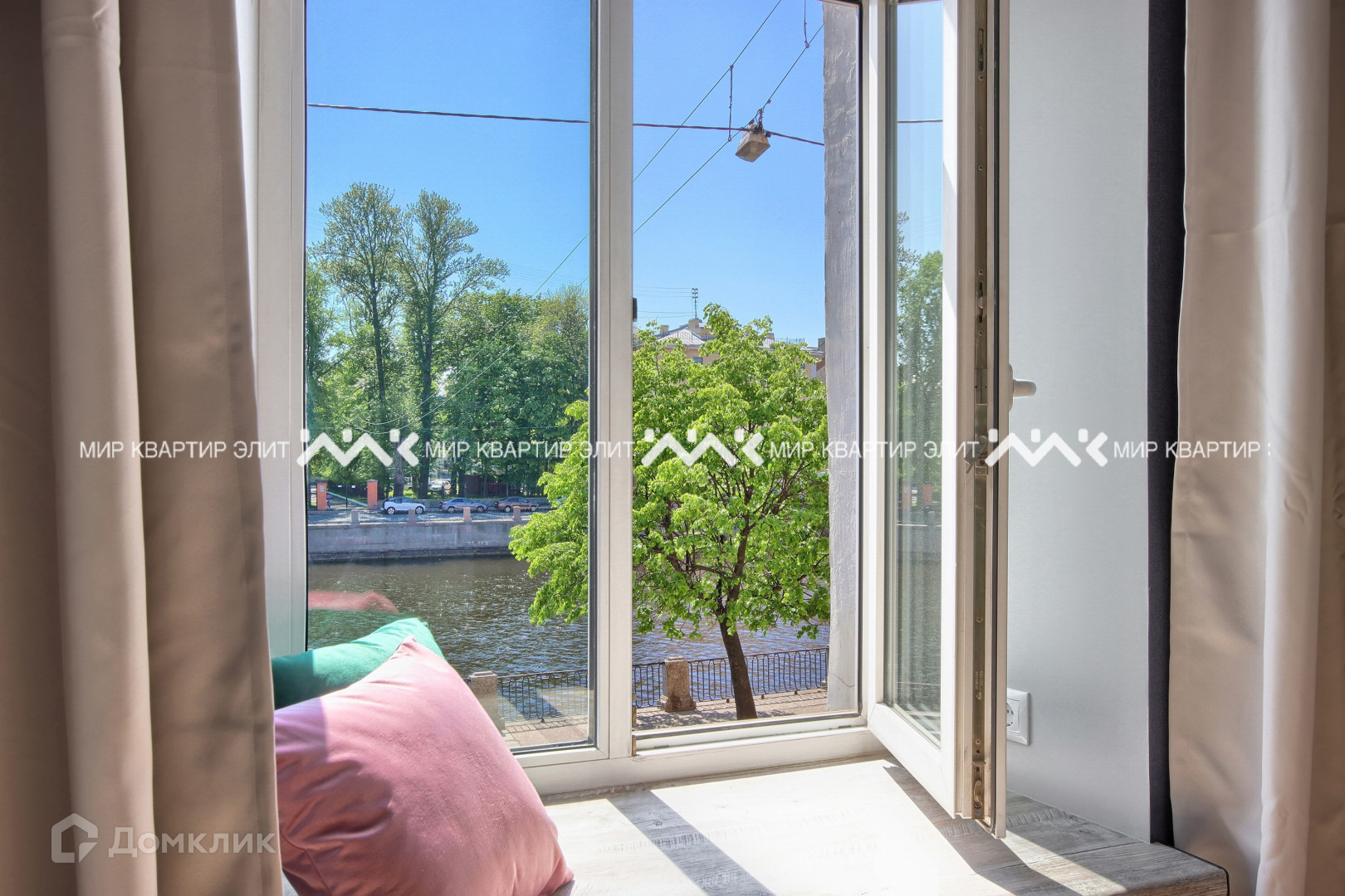Квартира расположена в тихом районе. Прекрасный вид на воду и зелень за окном.