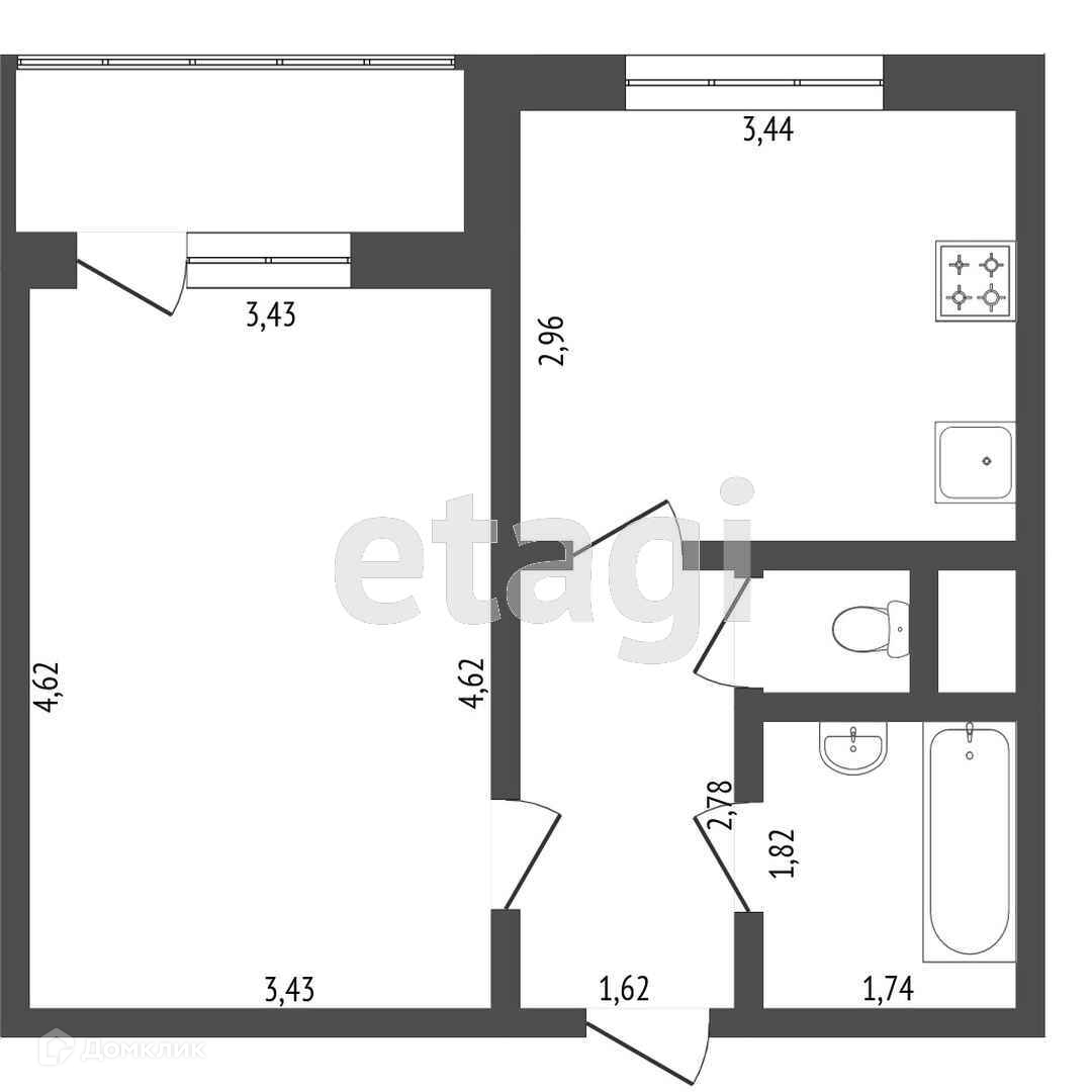 Балкон, лоджия 1 балкон