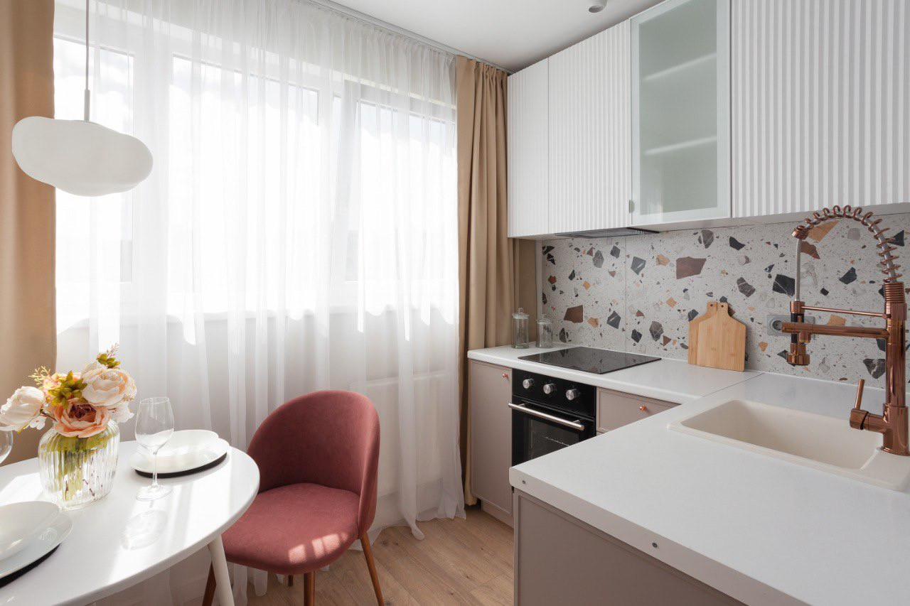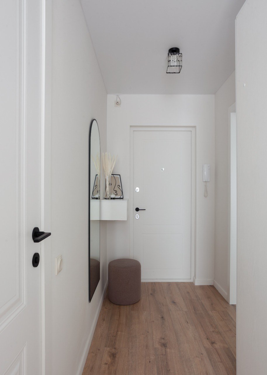 В квартире выполнен капитальный ремонт с заменой всей электрики и сантехнических труб, выровнен пол и стены, заменены окна и двери. Квартира укомплектована всем необходимым набором мебели, техники и местами для хранения. В комнате установлена двуспальная кровать, вместительный шкаф, диван (раскладывается в дополнительное спальное место), косметический столик, тумба под телевизор. Кухня оснащена гарнитуром в два уровня, варочной панелью, духовым шкафом, вытяжкой и посудомоечной машиной. В санузле ванна, стиральная машина, инсталляция для унитаза, встроенные шкафы с корзиной для белья. В коридоре шкаф для верхней одежды, зеркало, металлическая входная дверь с шумоизоляцией.