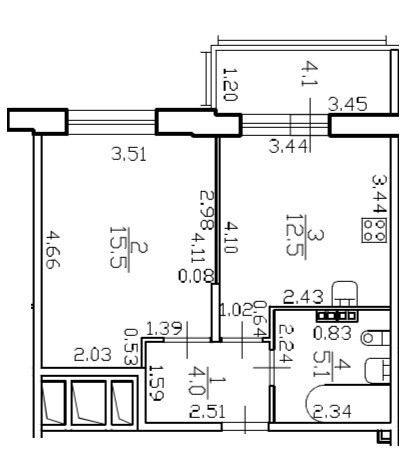 • Жилая комната 15,5кв.м. с выделенной нишей под шкаф,