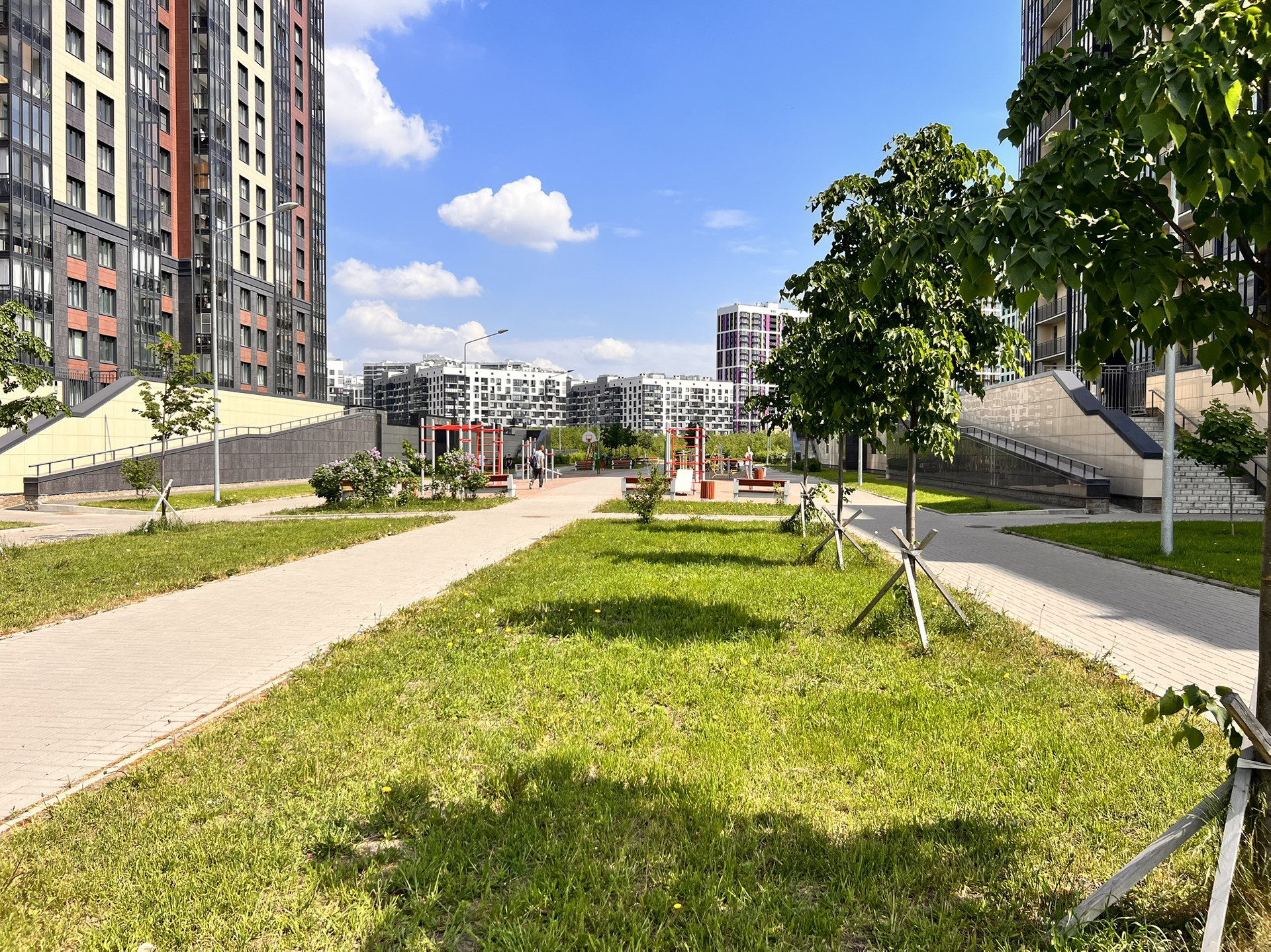 • Инфраструктура микрорайона развитая: в шаговой доступности расположены детские сады, школы, поликлиника, различные магазины, торговый центр Жемчужная плаза, Desport, фитнес-клубы, различные кафе и рестораны, различные развивающие центры для детей.