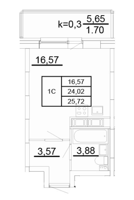 Общая площадь 25.72 м2