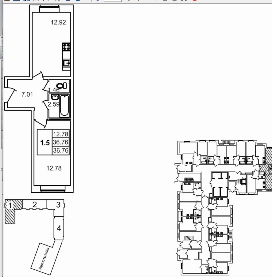 Общая площадь 36.76 м2