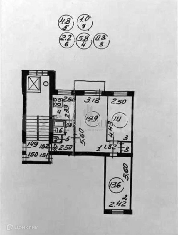 Площадь кухни 5.8 м2