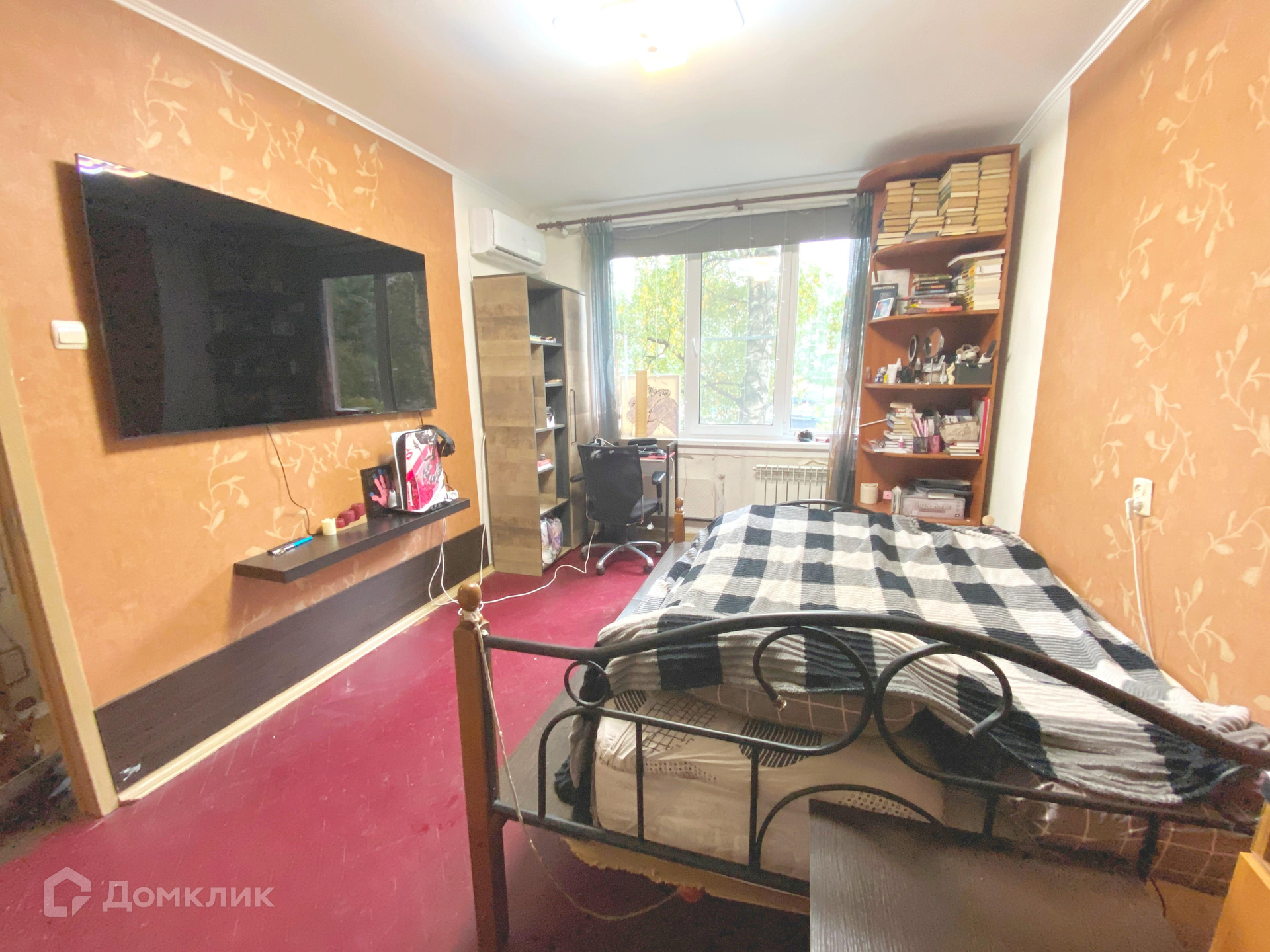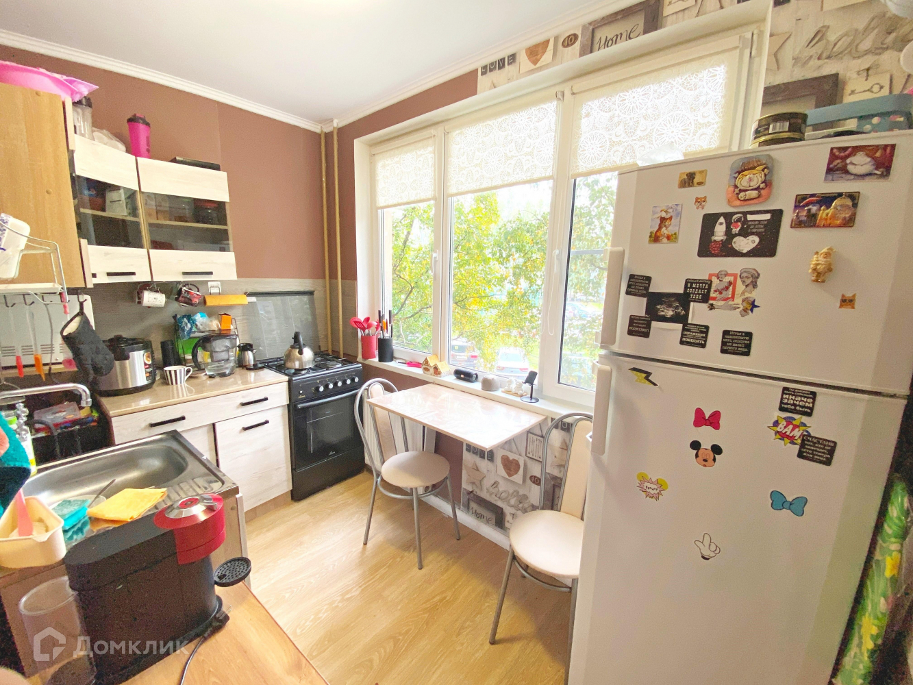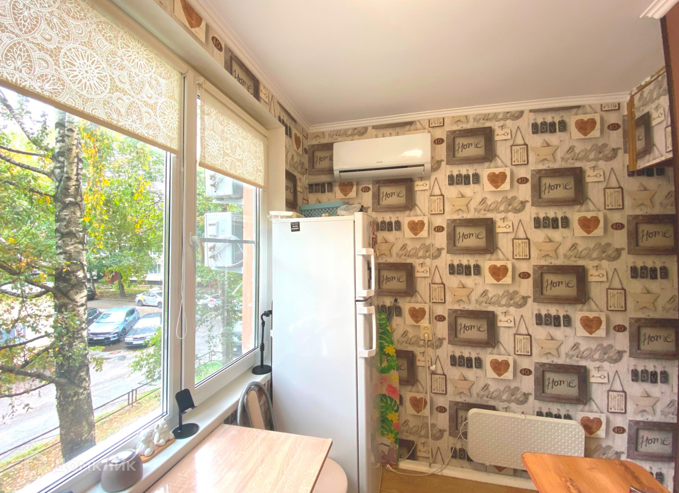 Окна квартиры выходят в тихий зеленый двор.