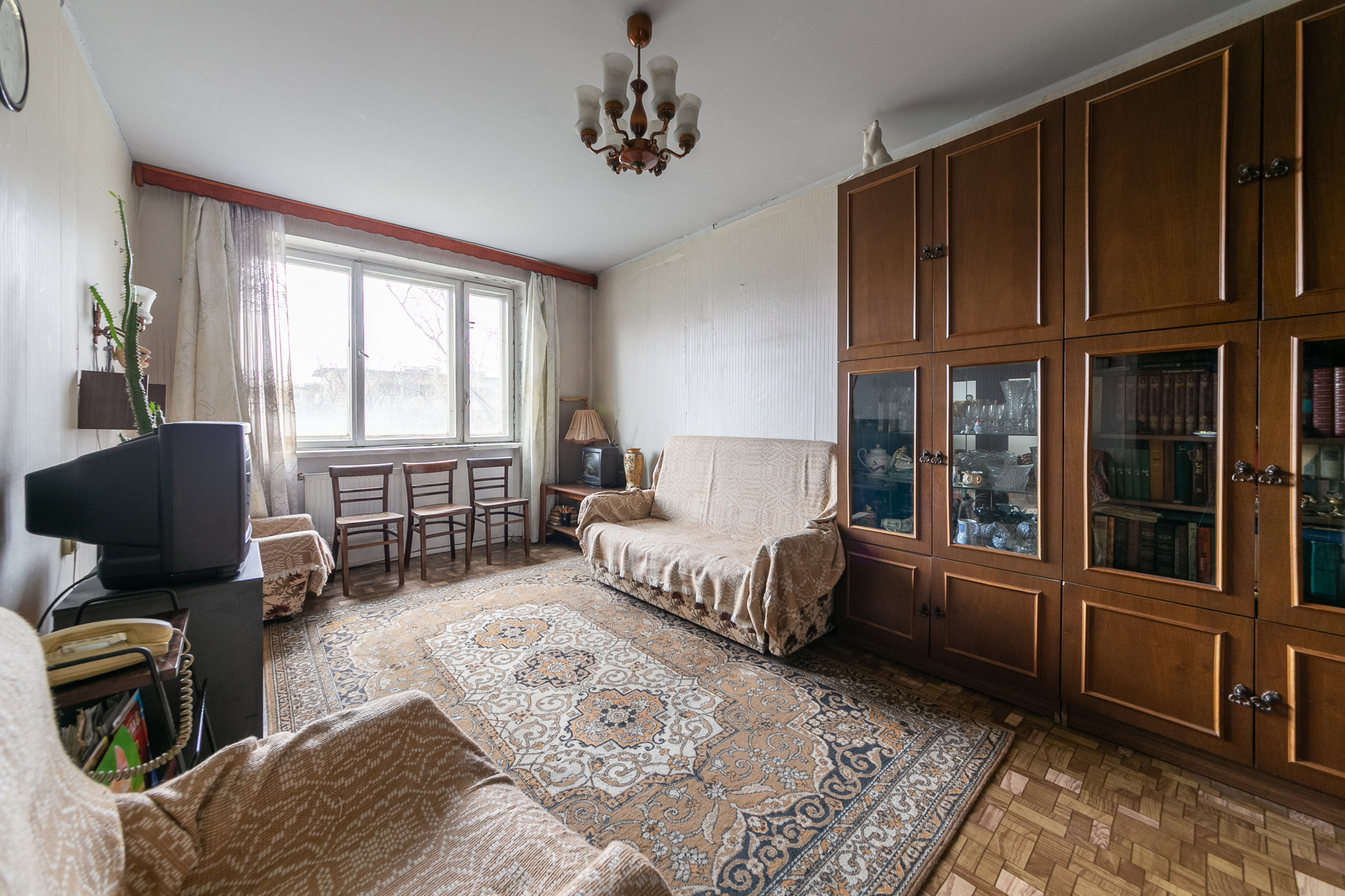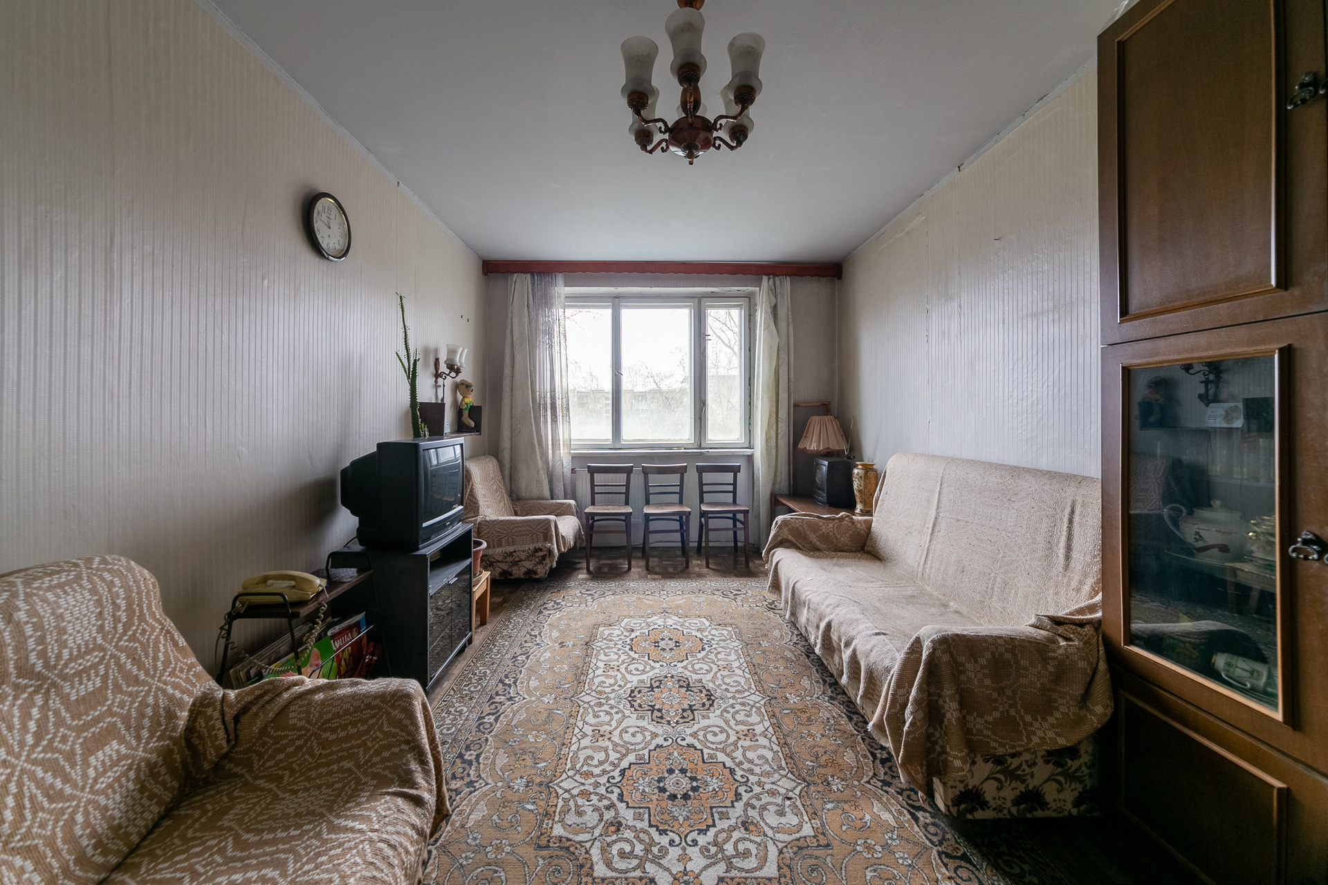 Просторная и светлая комната с большим потенциалом для перепланировки.