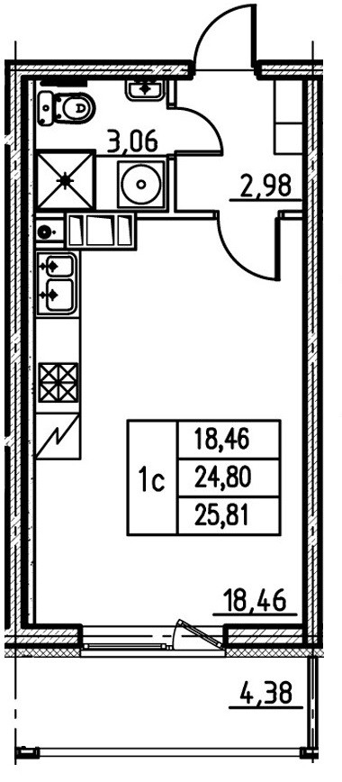 Общая площадь 24.8 м2