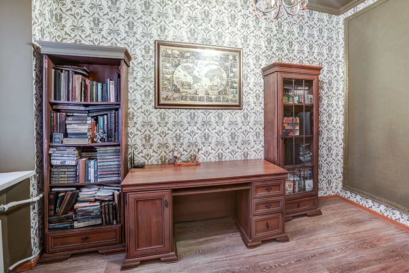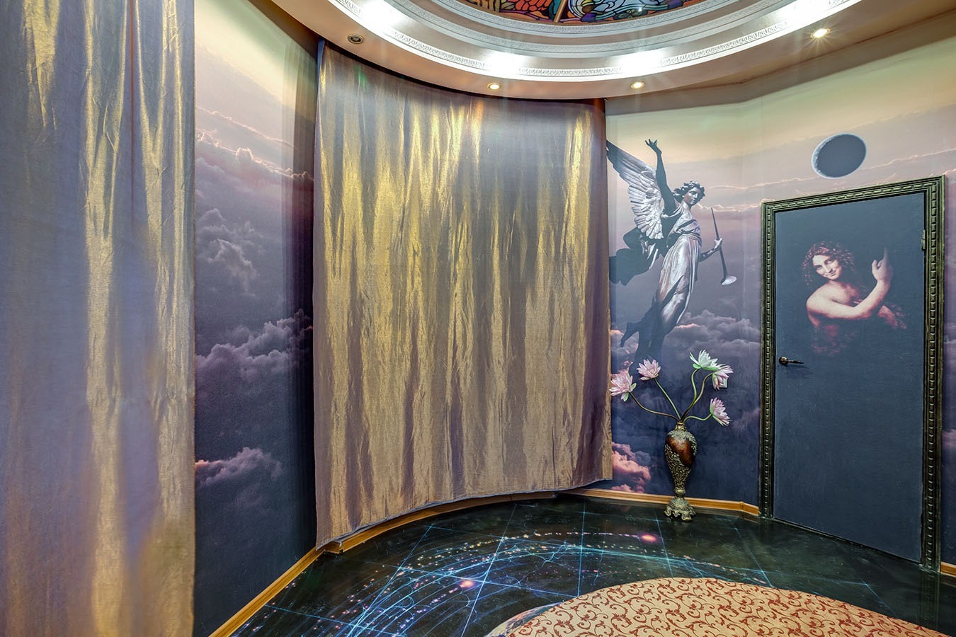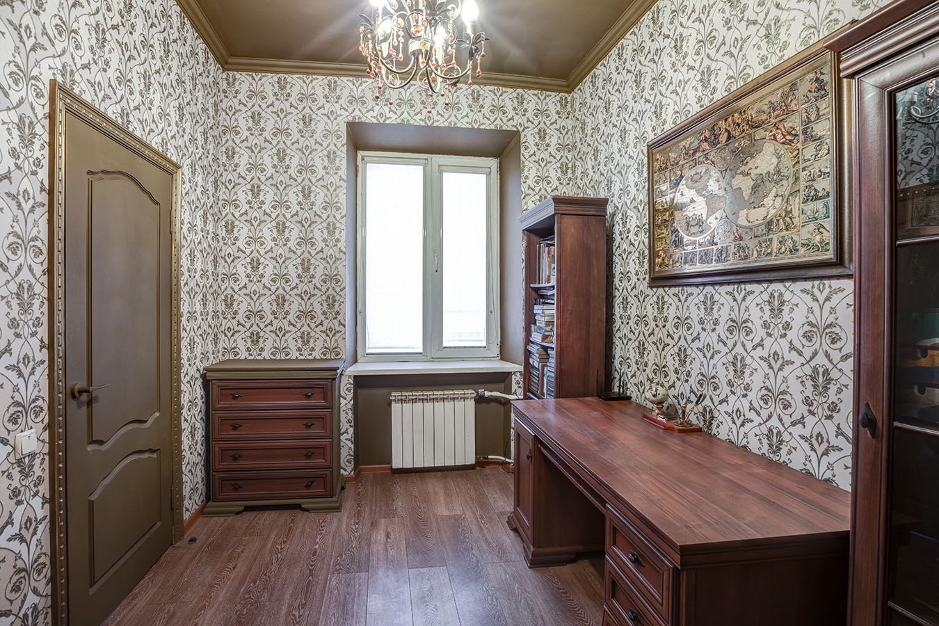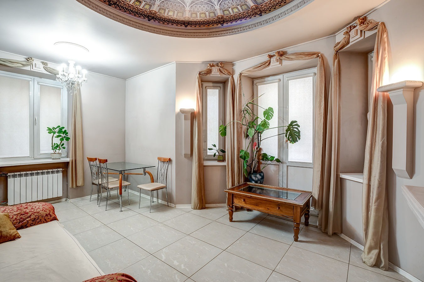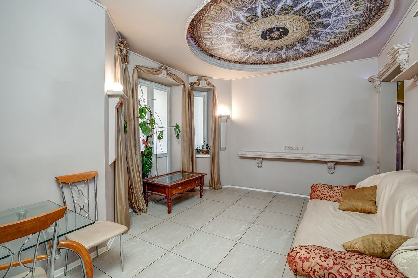 3. Дизайнерский ремонт по авторскому проекту: на потолках в двух комнатах роспись, в одной из комнат на окнах витражи.