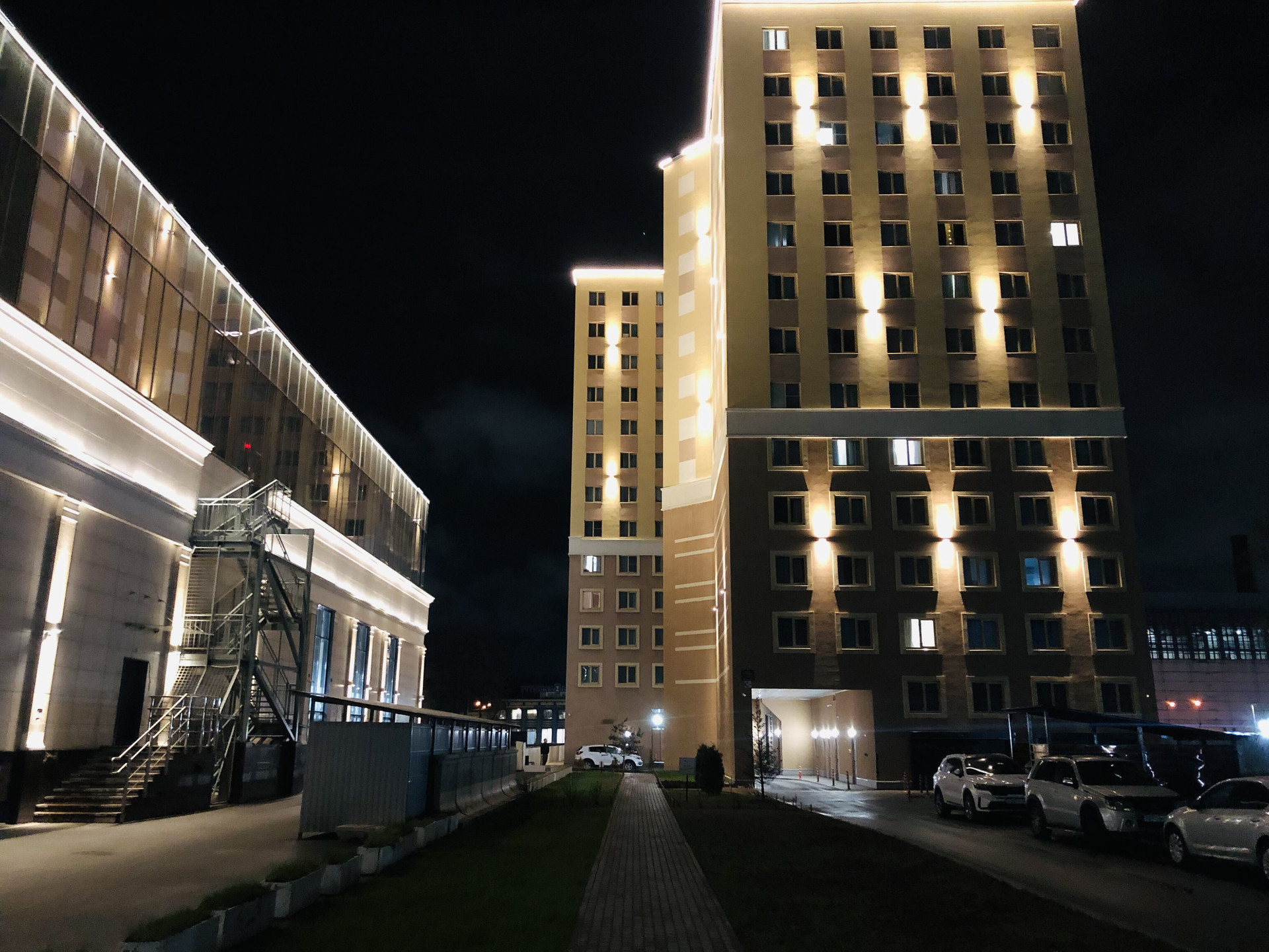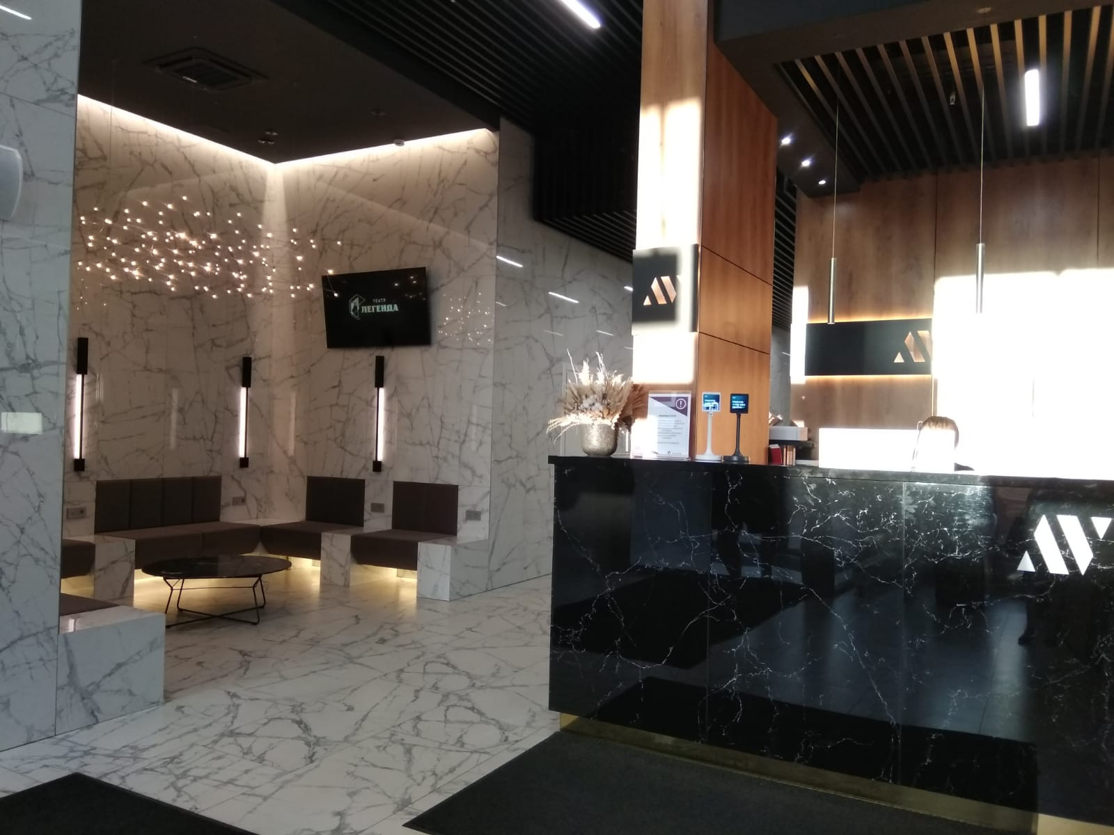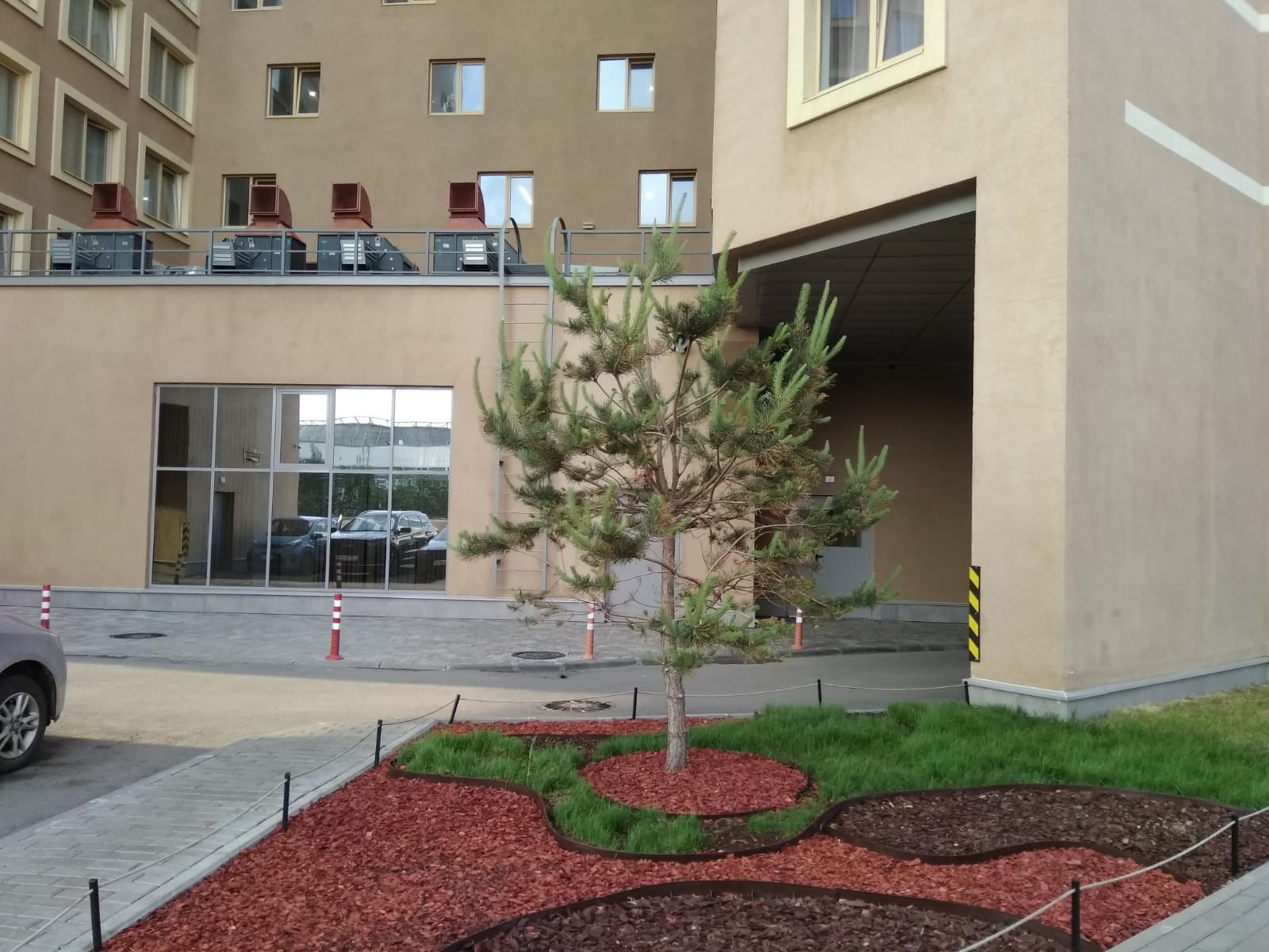Вход в апарт-отель с зоной ресепшн. 3 лифта: 1 грузовой, 2 пассажирских. Территория вокруг отеля - благоустроена, с круглосуточной охраной и видео наблюдением. Парковка во дворе.