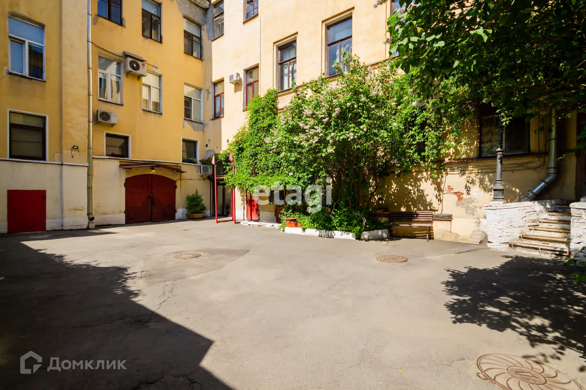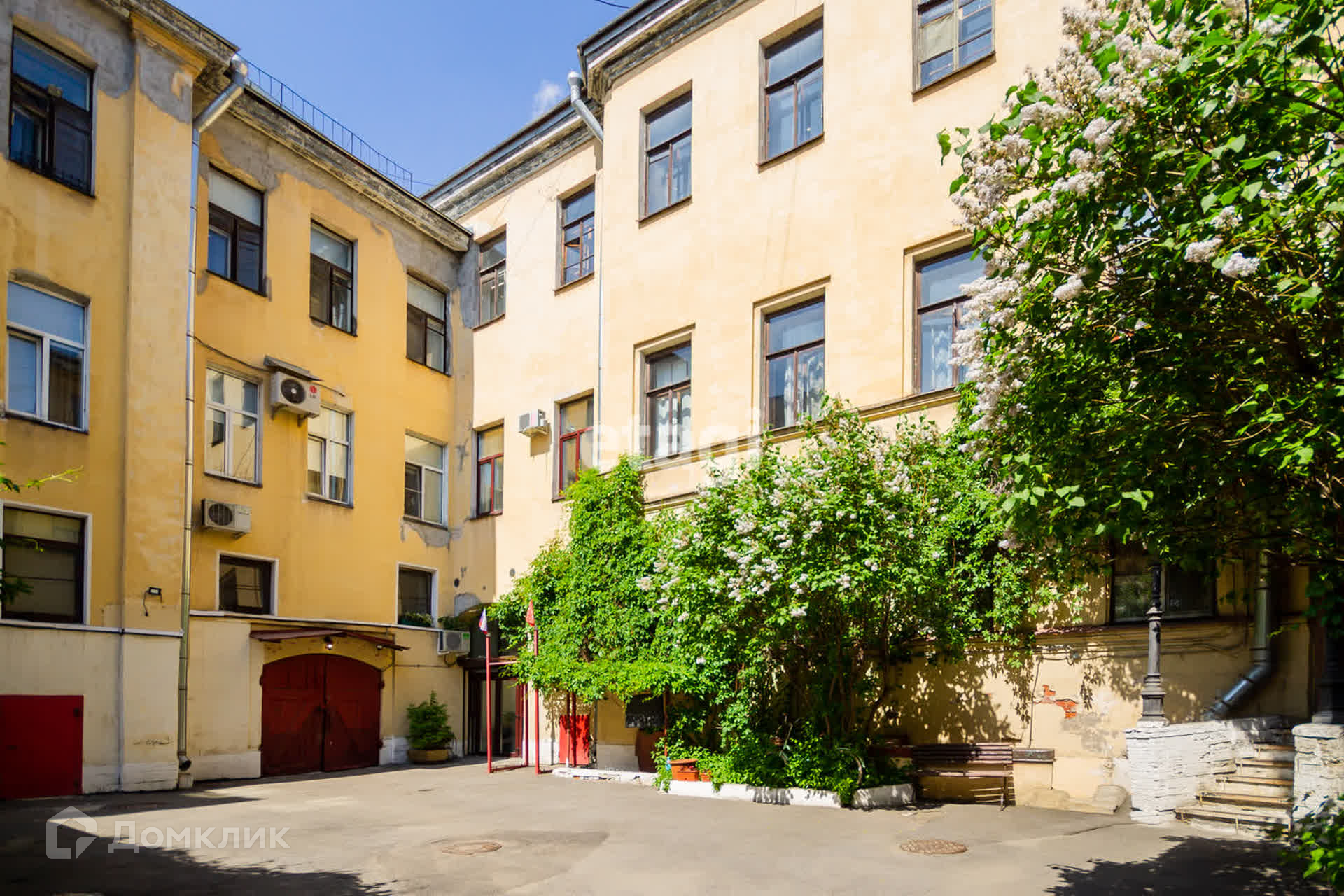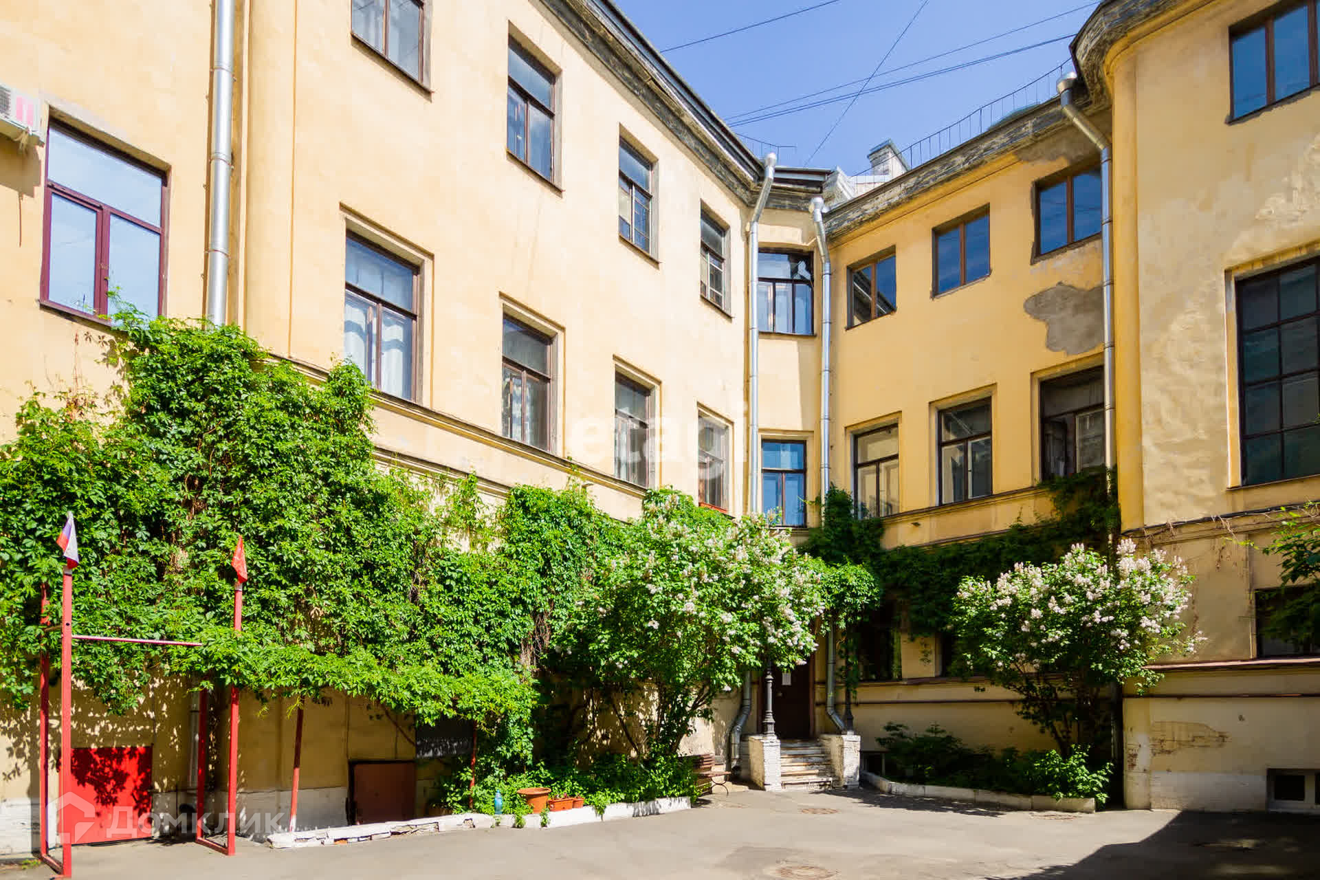 В доме всего 5 квартир, все в собственности. ТСЖ не организован. С улицы историческую часть здания занимает детский сад. В шаговой доступности детская поликлиника. Метро «Садовая» в 15 минутах ходьбы.