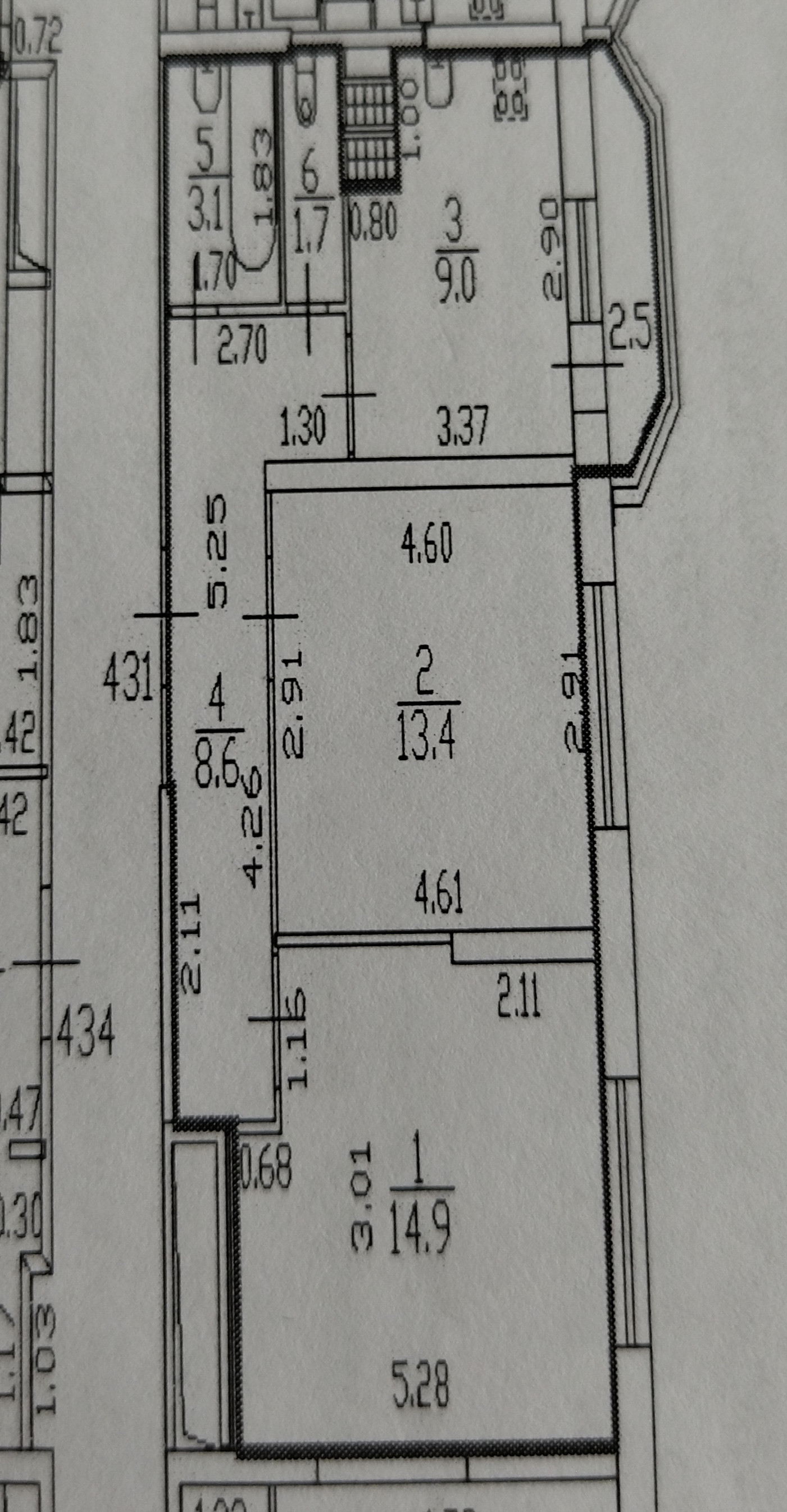 Жилая площадь 28.3 м2