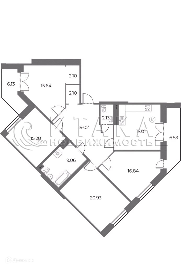 О КВАРТИРЕ: Общая площадь квартиры 126,45 кв.м, жилая площадь 68,69 кв.м, потолки 2,74 м., кухня 17,01 кв.м. (с выходом на лоджию), холл 19,02 кв.м. с гардеробной 2,10 кв.м., 1 комната 15,64 кв.м. с просторной гардеробной 2,10 кв.м. (с выходом на лоджию), 2 комната 15,28 кв.м., 3 комната 20,93 кв.м., 4 комната 16,84 кв.м. (с выходом на лоджию), лоджии 6,53 и 6,13 кв.м, 1 санузел 9,06 кв.м, 2 санузел 2,13 кв.м.