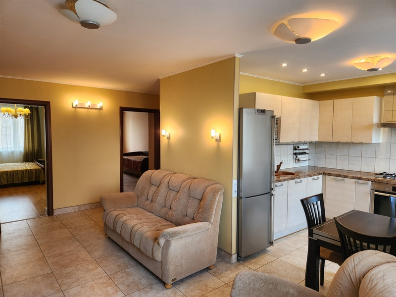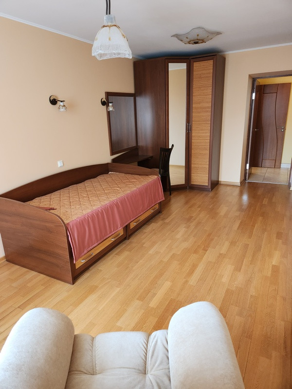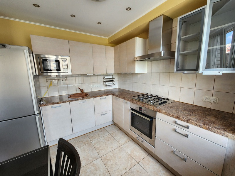За счет выполненной перепланировки квартира приобрела европейский вид, который позволяет всей семье с удобством находиться в просторной кухне-гостиной, где можно расположиться в уютных креслах и насладиться беседой или любимыми фильмами, используя домашний кинотеатр. Общий метраж квартиры 75,5 м, (с учетом тамбура, который отремонтирован и включен в квартиру 80кв.м.) Комнаты изолированные 17,9 кв.м (спальня), 16,2 кв.м (детская), 10 кв.м (кабинет), просторная кухня - гостинная 26,1 кв. м, Так же есть небольшая гардеробная, совмещенный санузел. В квартире выполнен качественный ремонт: выровнены стены и оклеены обоями под покраску, на пол уложен паркет и плитка, предусмотрен подогрев полов. При обустройстве использованы мебель из натурального дерева и качественная бытовая техника. Предусмотрено много систем хранения, продумана электрическая разводка, местное освещение, удобство уборки и эксплуатации. Окна квартиры выходят на две стороны запад и восток, квартира очень светлая и в ней всегда есть солнце. В двух комнатах застекленные балконы. Квартира в прекрасном жилом состоянии. Удачная планировка создает ощущение простора в квартире.
