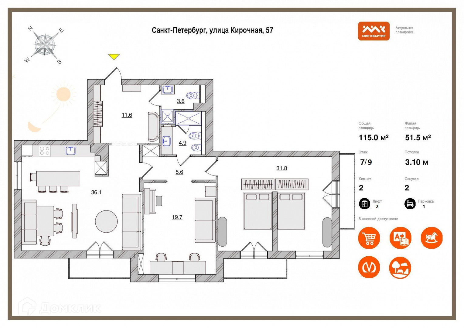 Общая площадь 115 м2