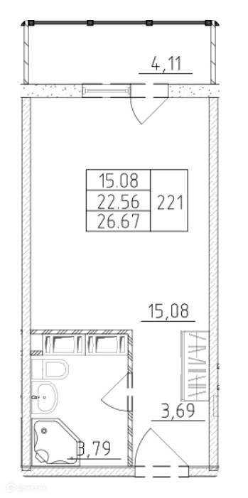 Общая площадь 23.79 м2