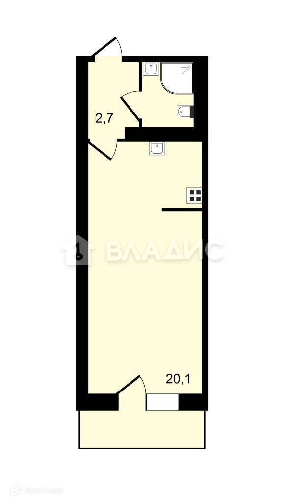 Продается квартира-студия 25,2 кВ.м.