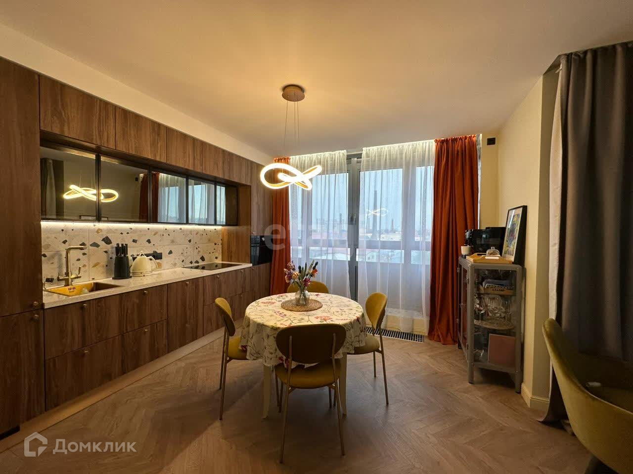 Квартира укомплектована кондиционером, посудомоечной машиной, холодильником, духовкой, совмещенной с свч. Вся техника встроенная и остается новым хозяевам.