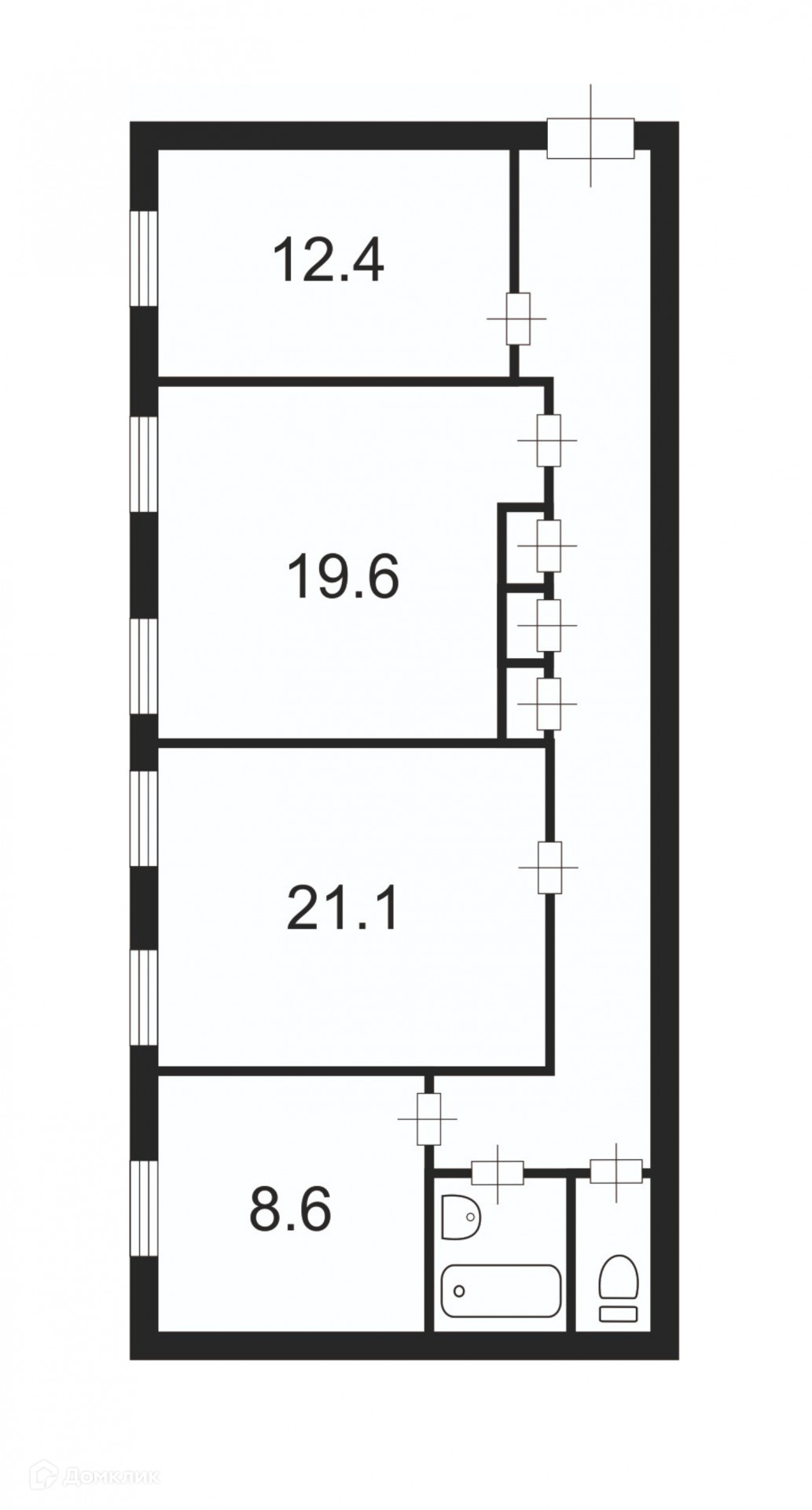 Жилая площадь 53.1 м2