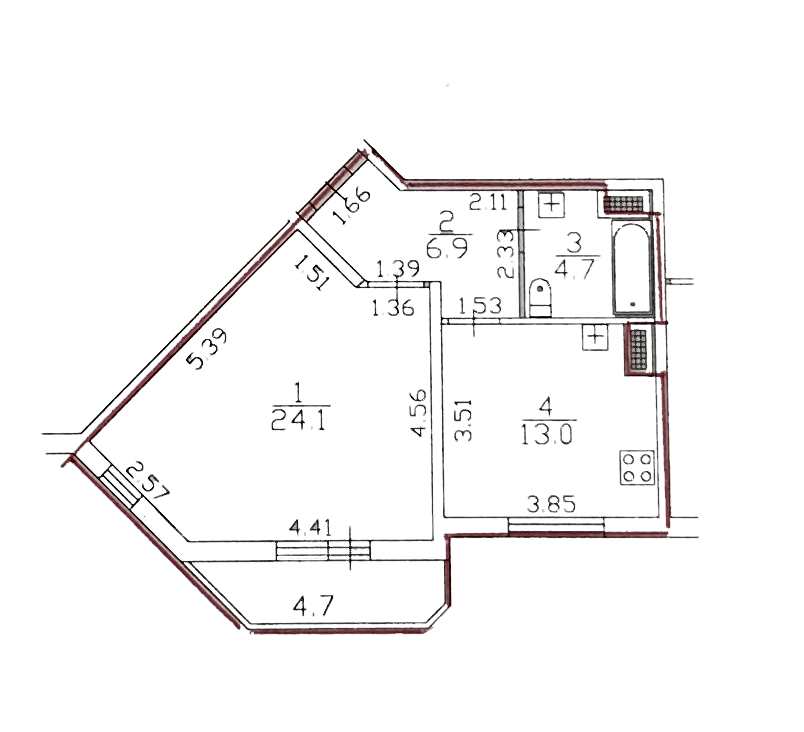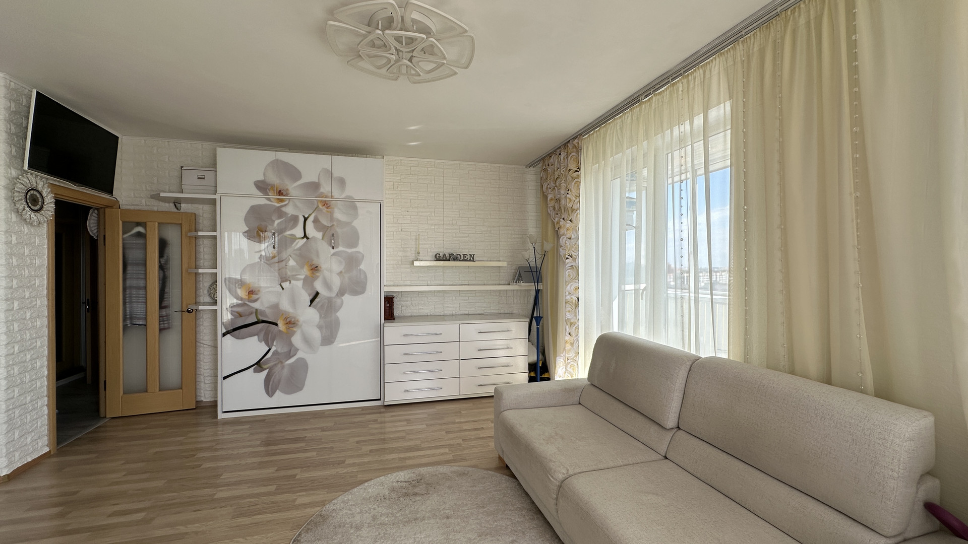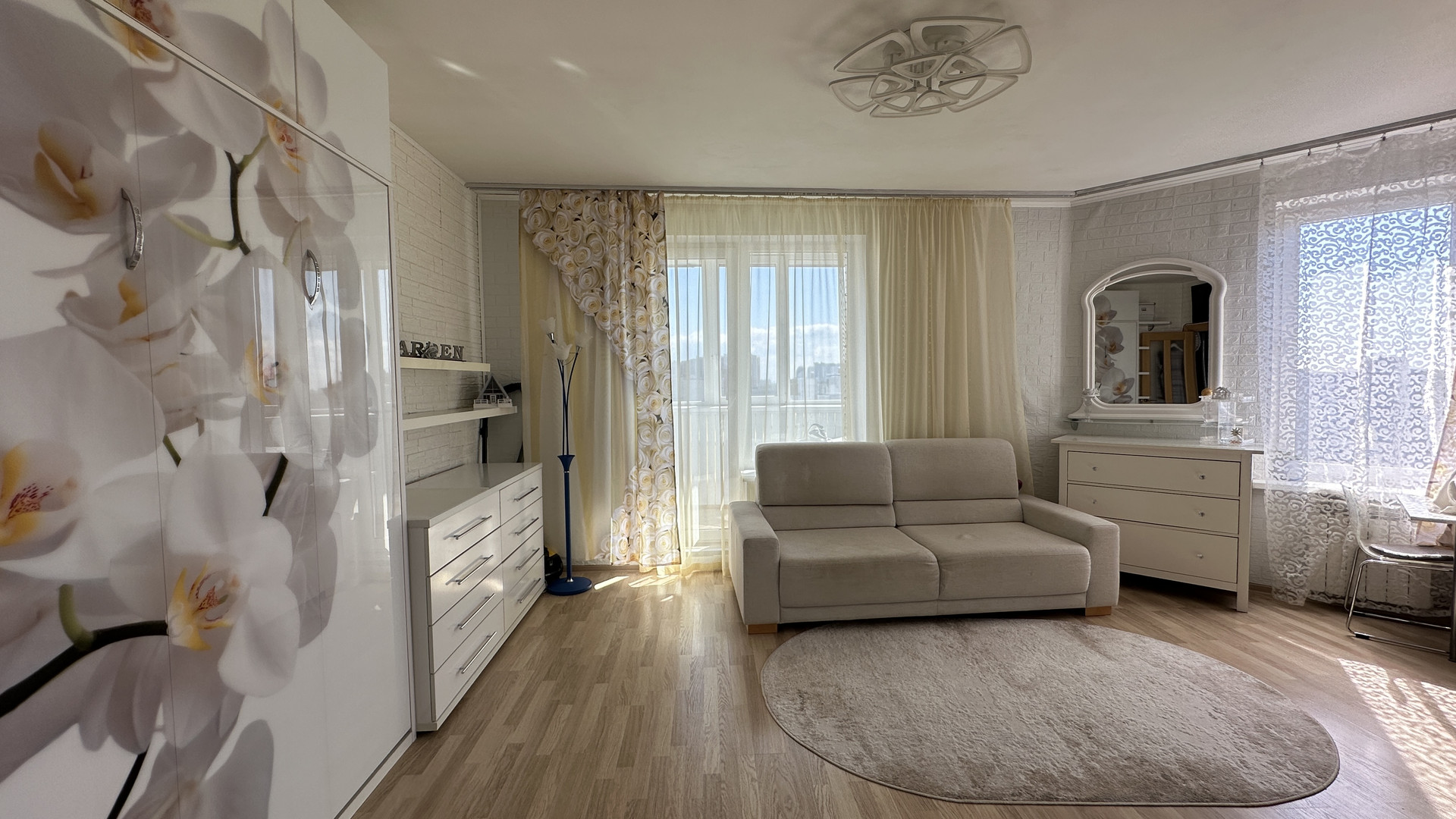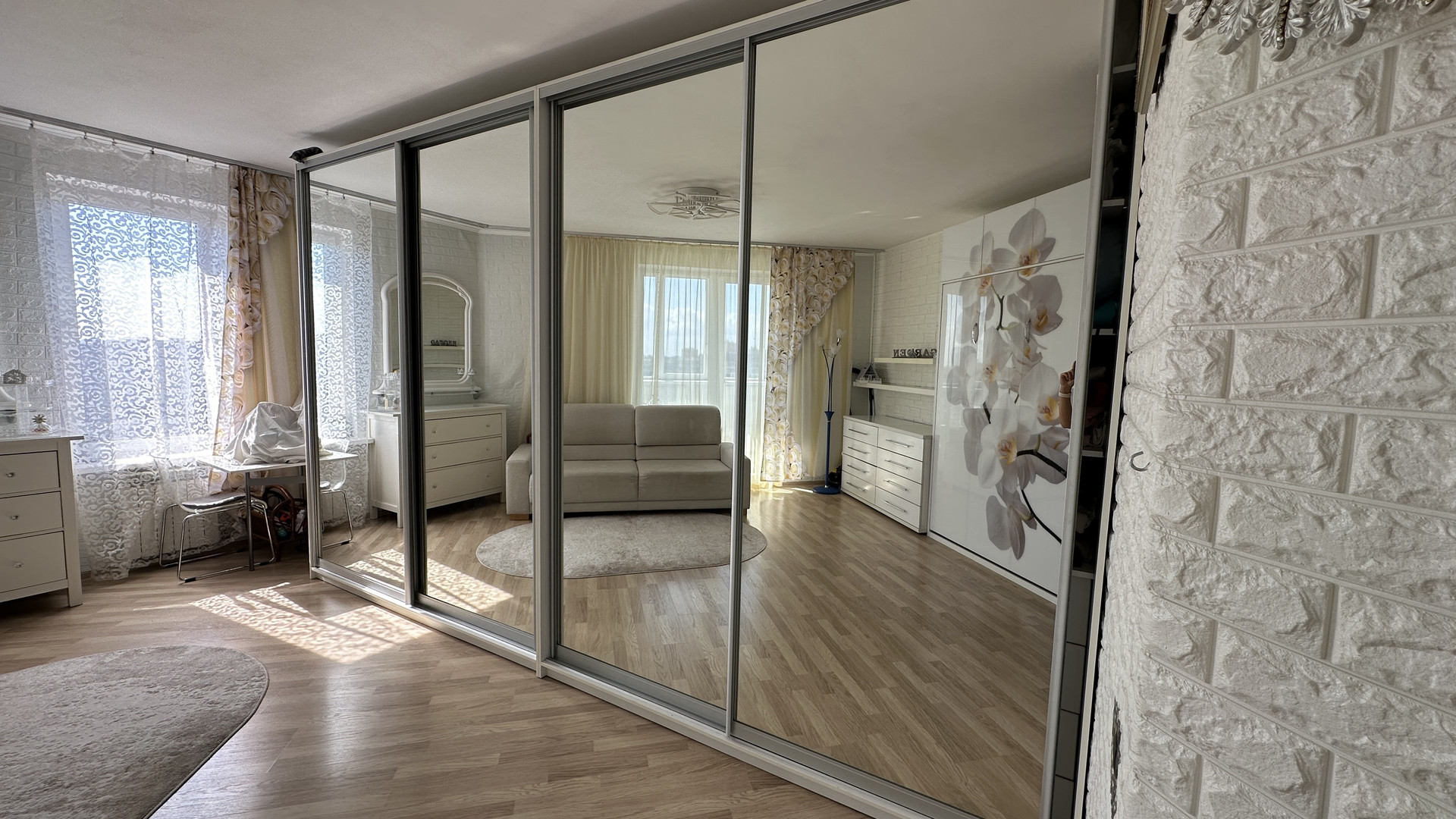 Комната 24,1м: встроенная кровать, которая экономит пространство в сложенном виде, комод. Огромный вместительный шкаф купе, два окна.