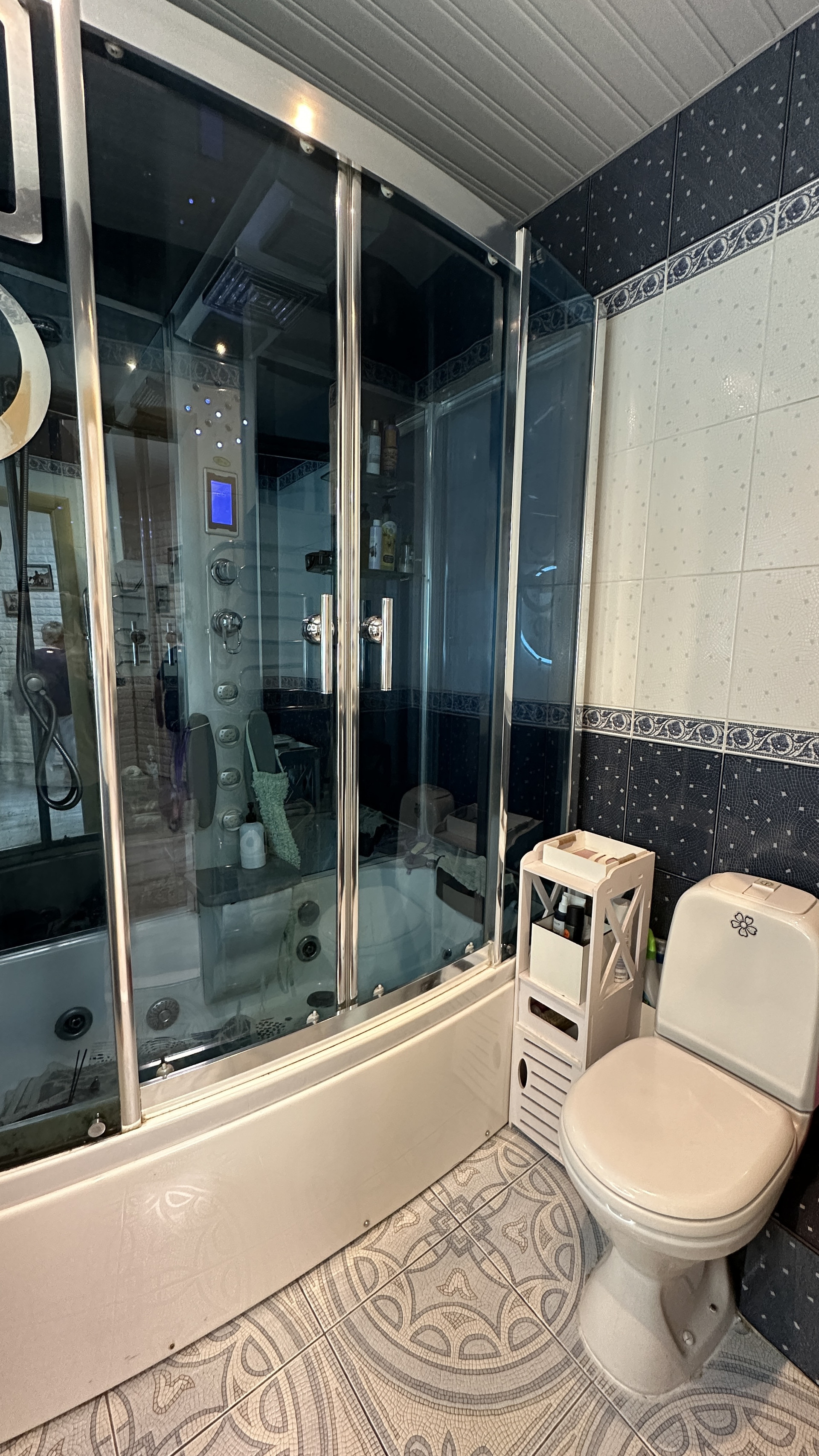 Санузел 4,7м: душевая кабина с ванной