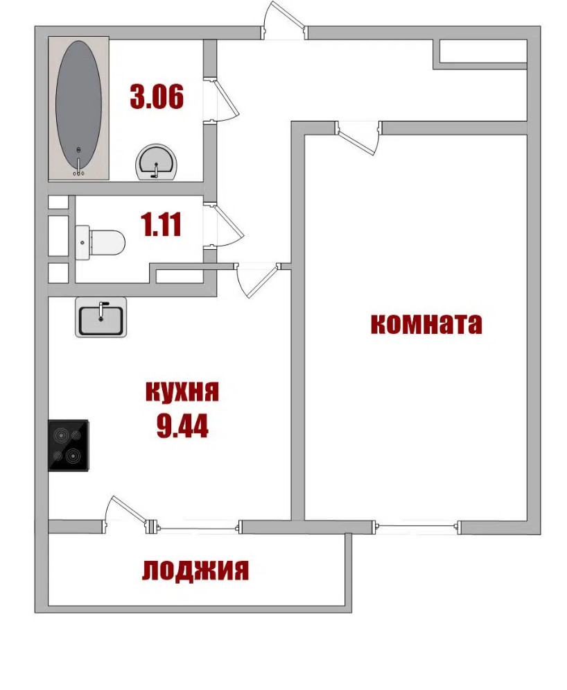 Балкон, лоджия 1 балкон