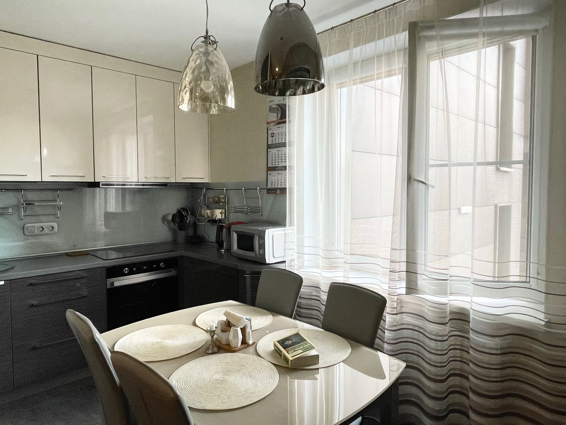 В квартире выполнен стильный лаконичный ремонт из качественных материалов, квартира полностью оснащена всем необходимым.