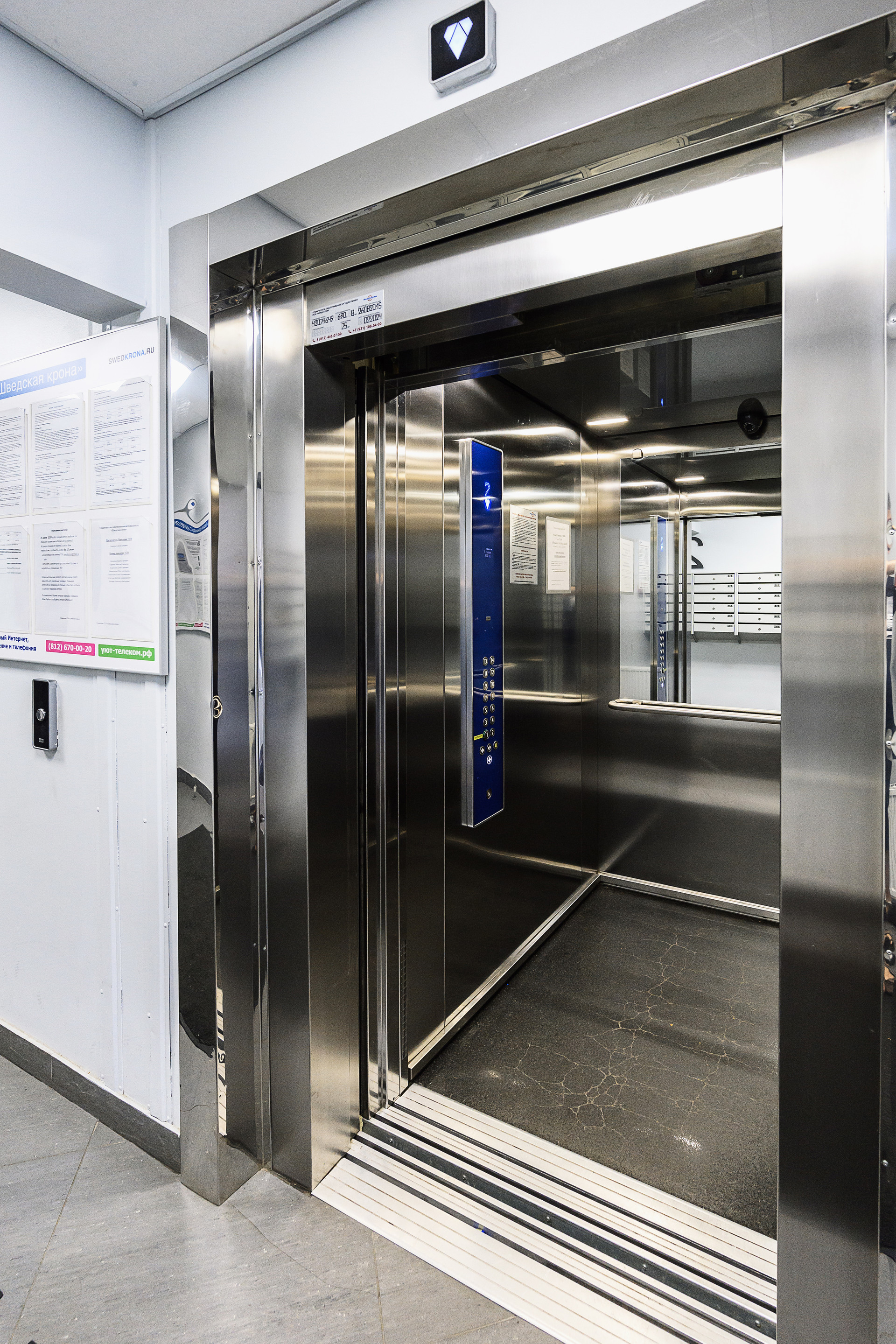 В доме бесшумный просторный лифт Kone. Пологий вход в парадную, колясочная, подземный паркинг.