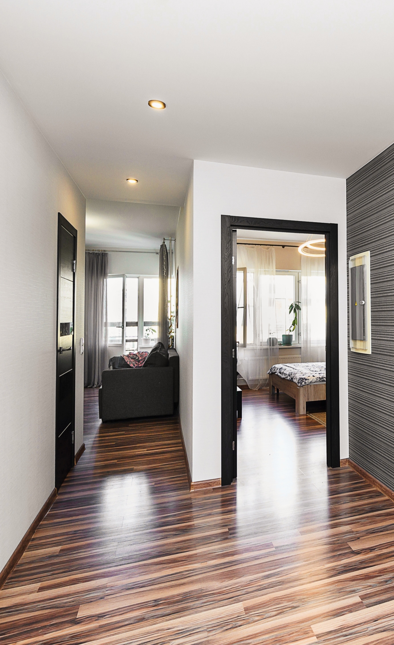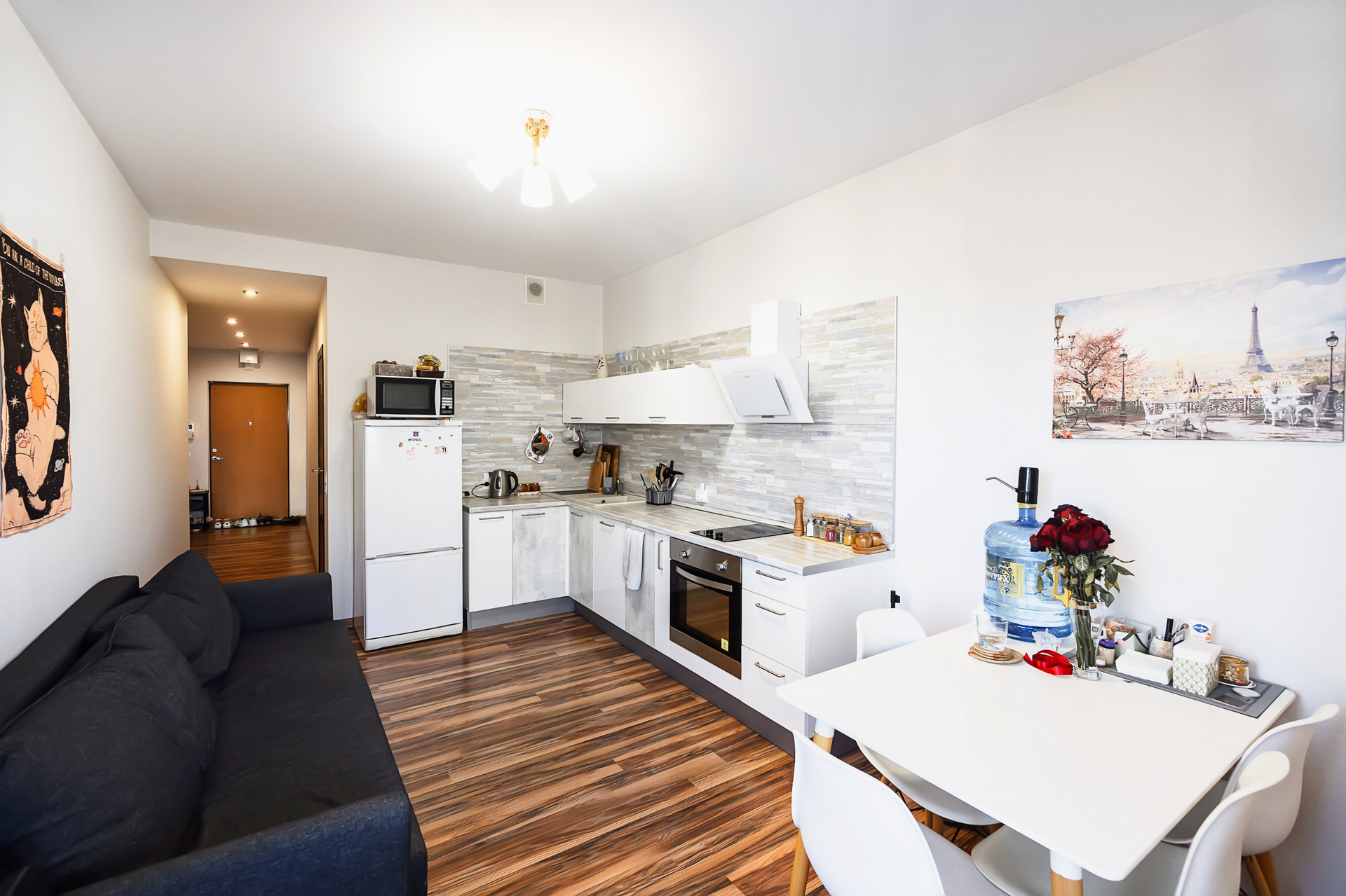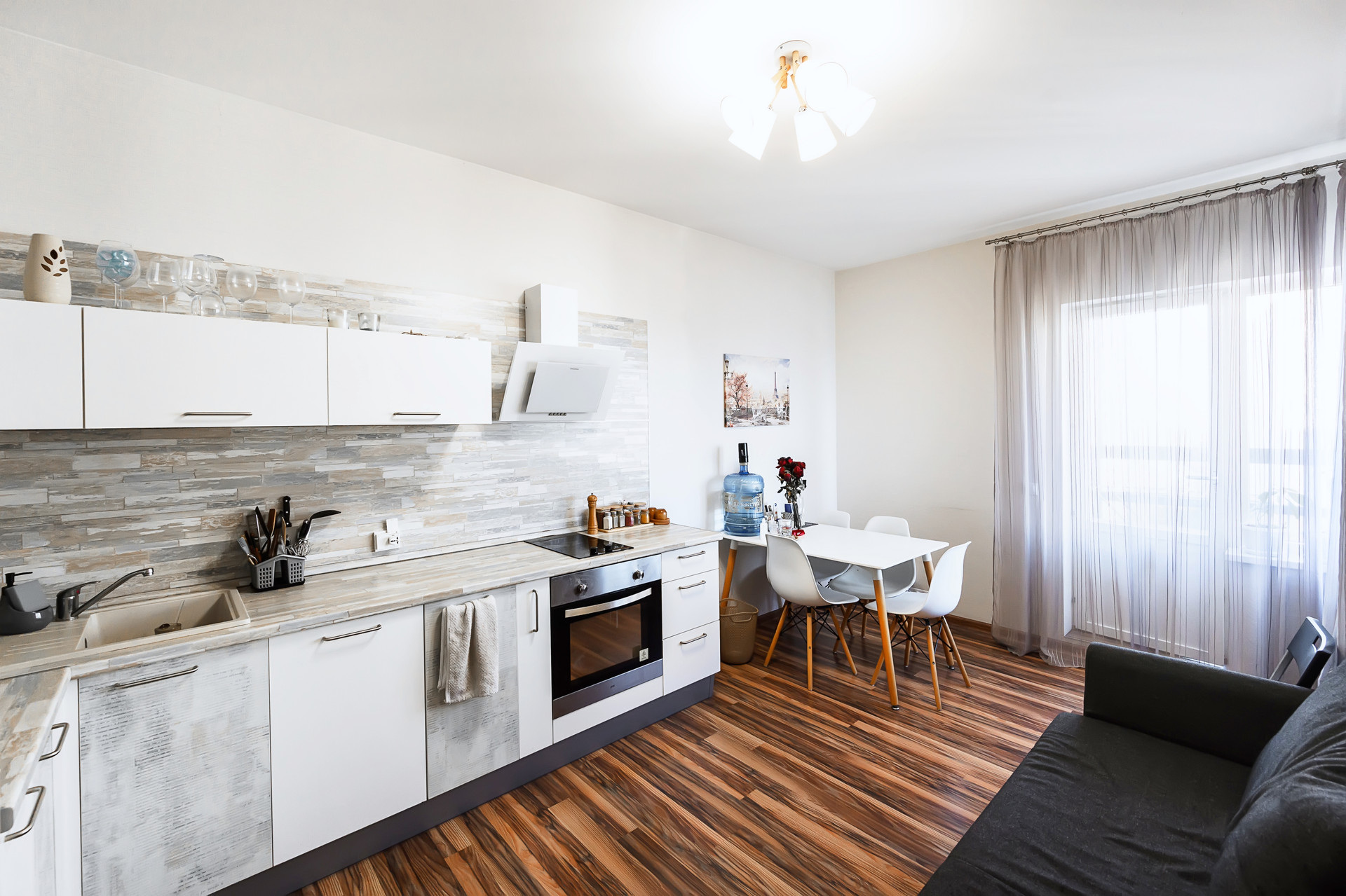 В квартире выполнен качественный ремонт по дизайн проекту:
