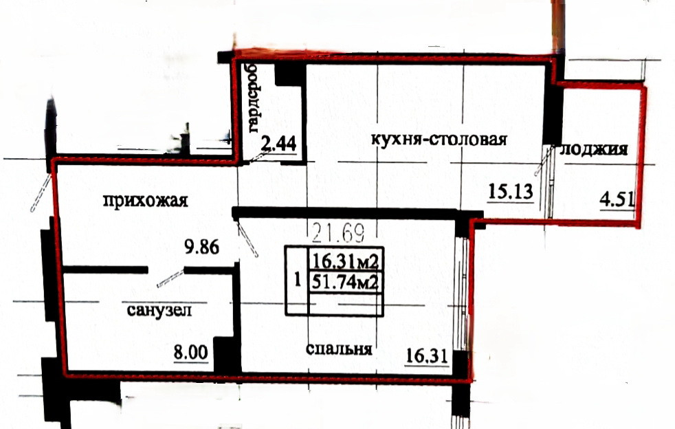 Общая площадь 51.5 м2