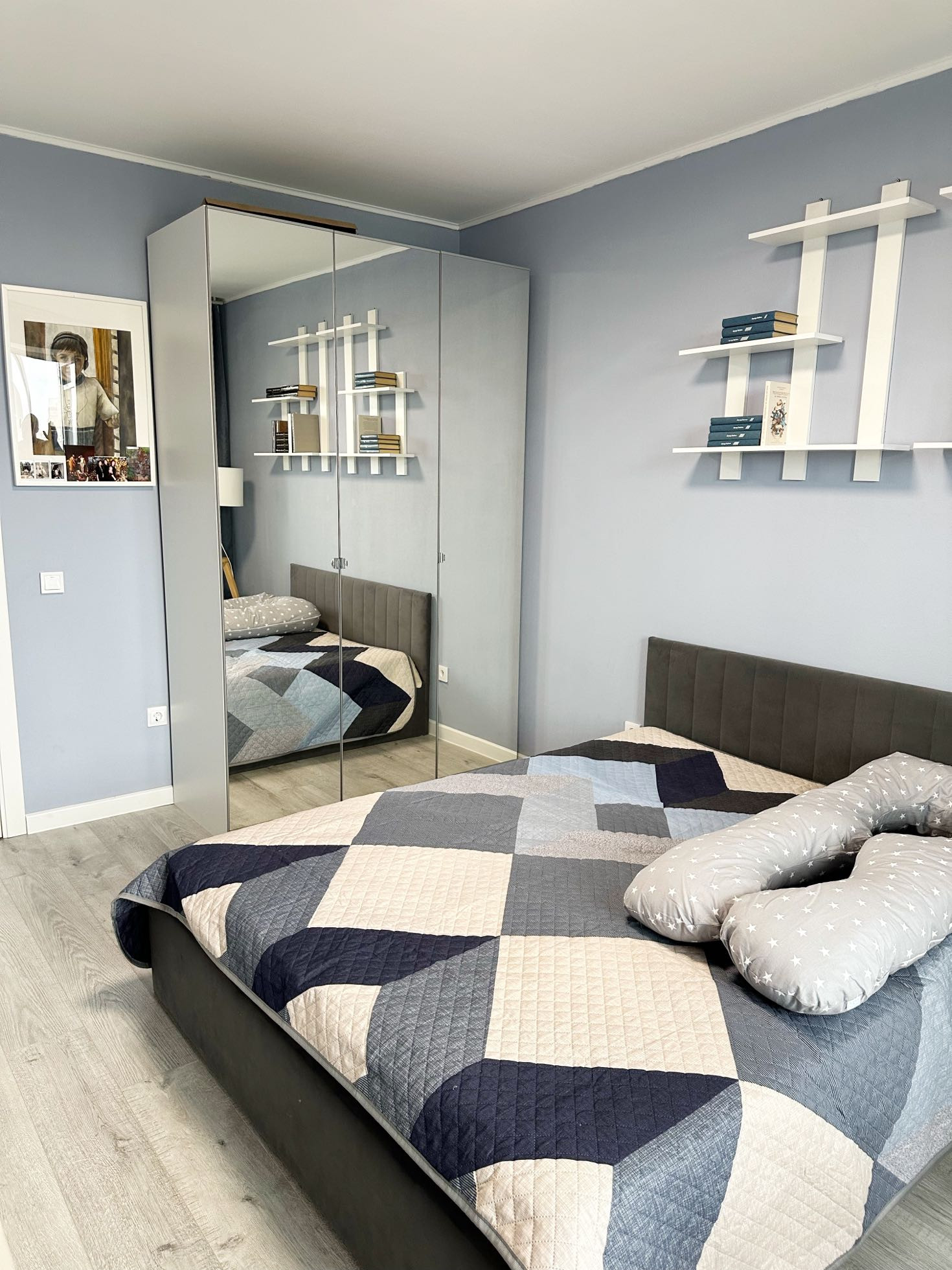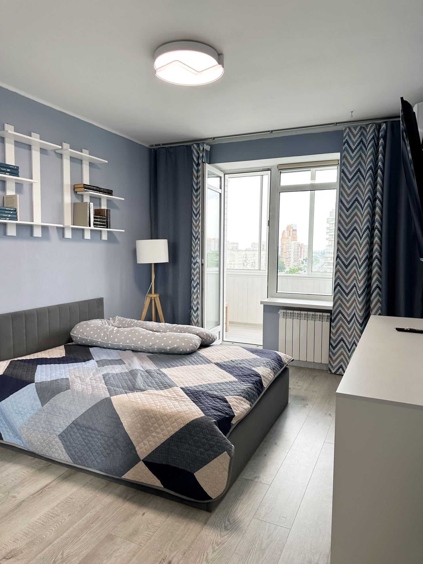Кухня - 9 метров, комната - 14 метров, раздельный санузел, кладовая с установленной гардеробной системой. Хороший вид из окон, особенно красиво вечером.
