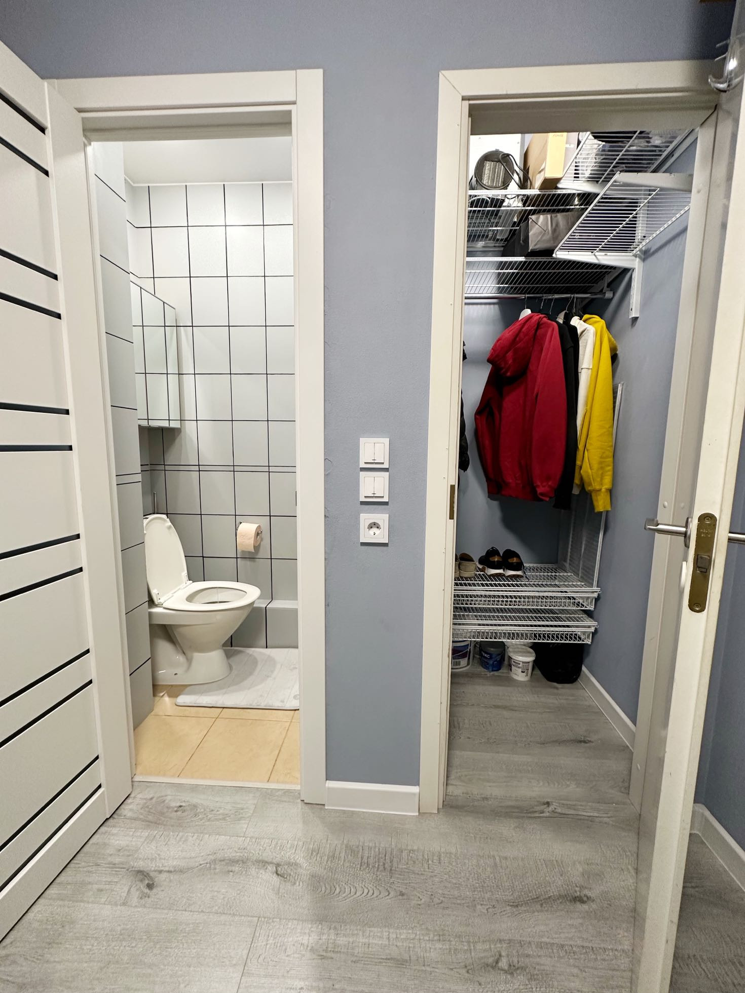10 этаж, закрытый тамбур, есть место для хранения колясок, велосипедов.