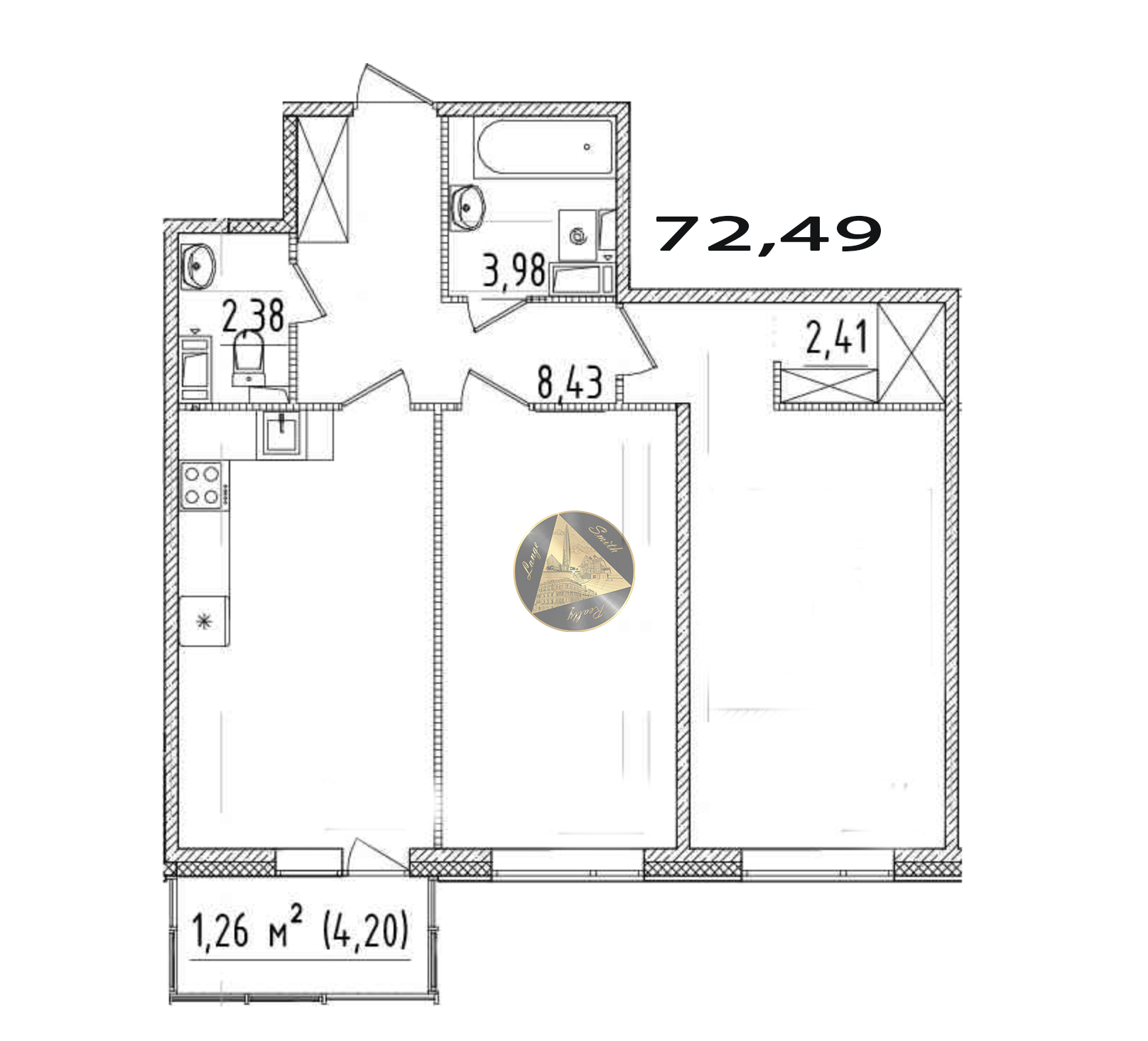 - Общая площадь квартиры: 72,49 м2.
