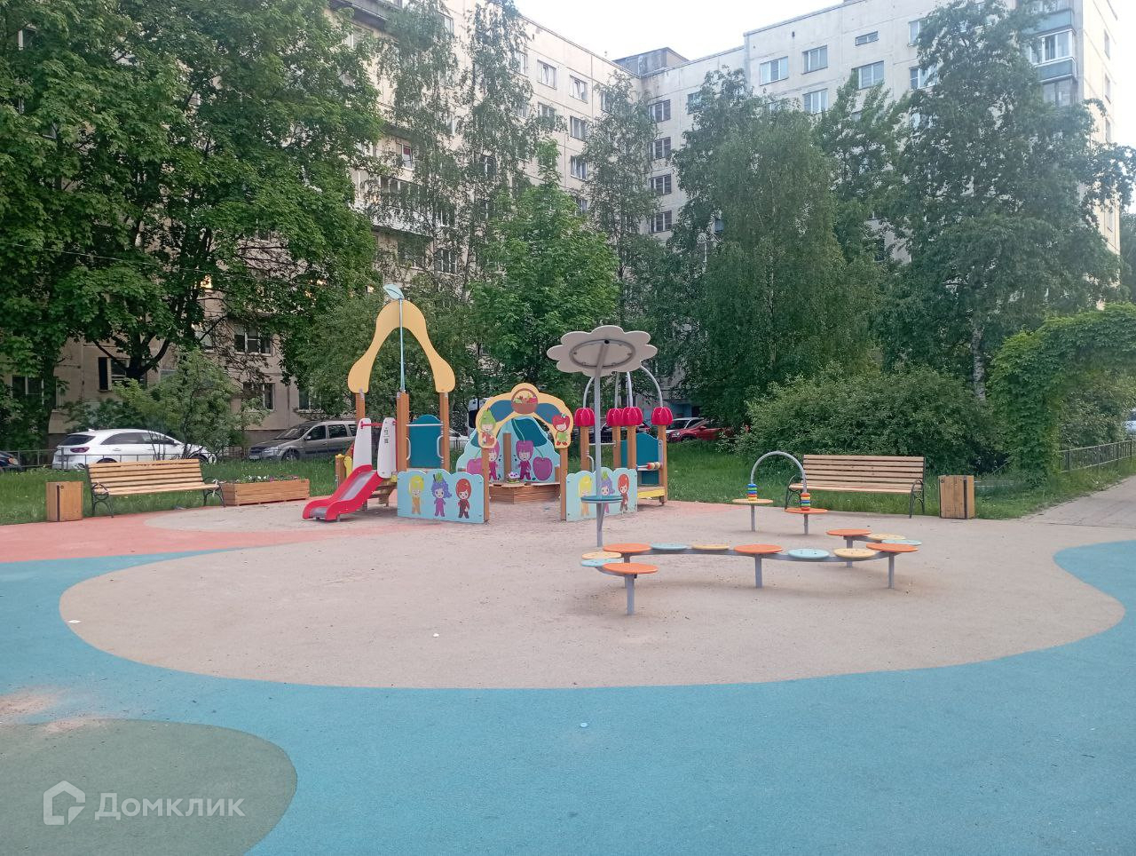 + Двор, утопающий в зелени; большая площадка для детей разного возраста