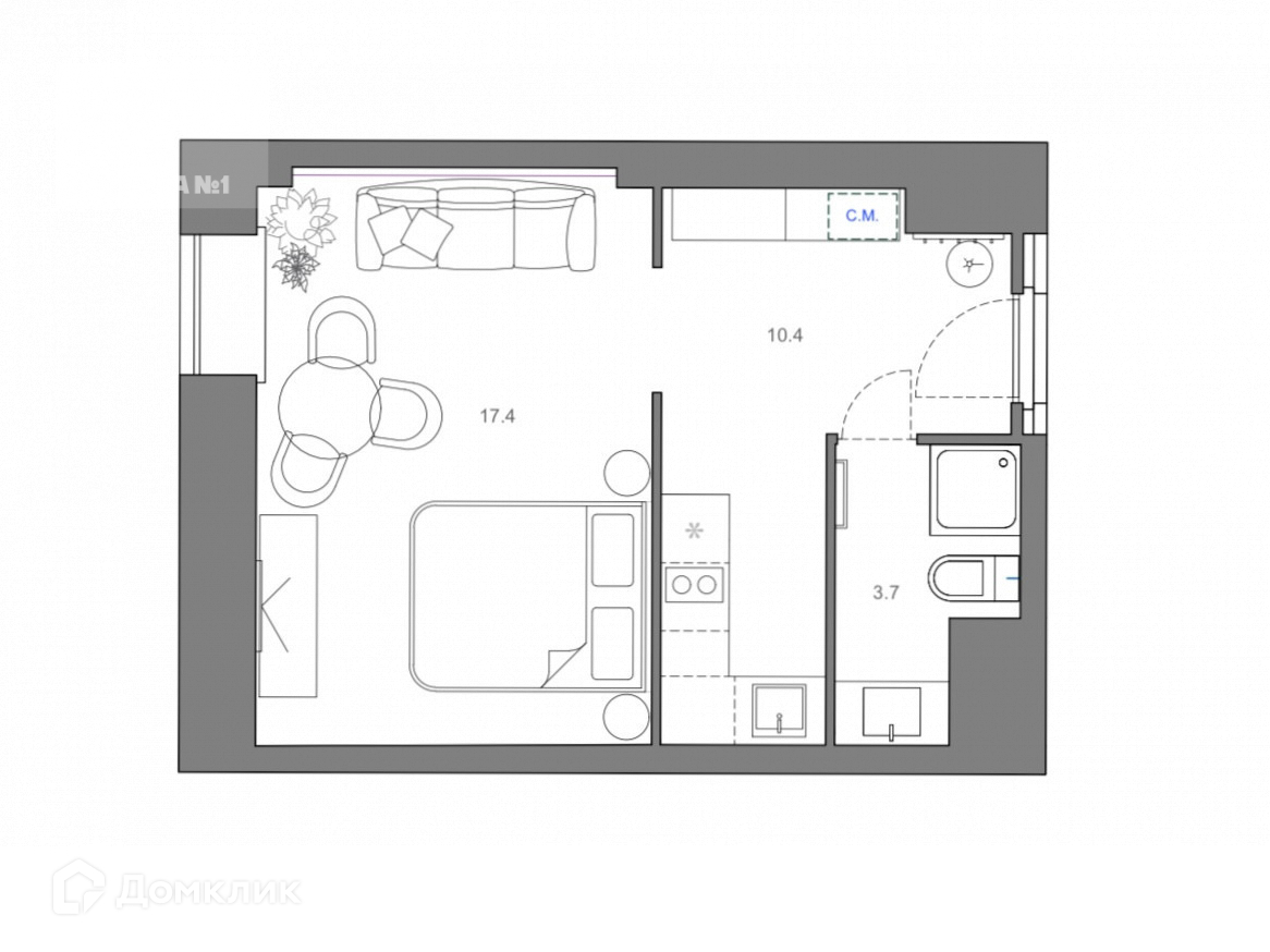 Общая площадь 33 м2