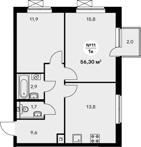 Общая площадь 56.3 м2