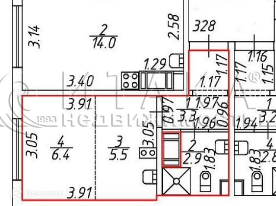 Общая площадь 18.1 м2