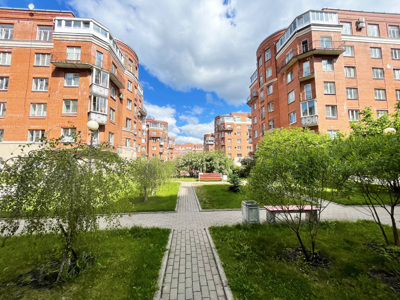 Жилой комплекс с закрытой и благоустроенной территорией, чистый зеленый двор с декоративными деревьями и детской площадкой, настоящий кирпичный дом, малоэтажная застройка, где многие соседи живут с момента постройки дома и поддерживают добрососедские отношения.
