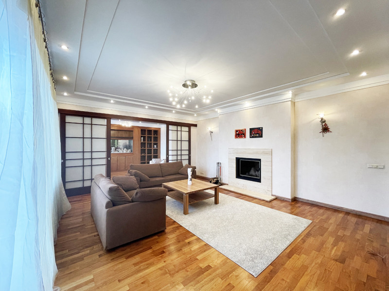 • Просторная гостиная 30 м2 с балконом и настоящим дровяным камином