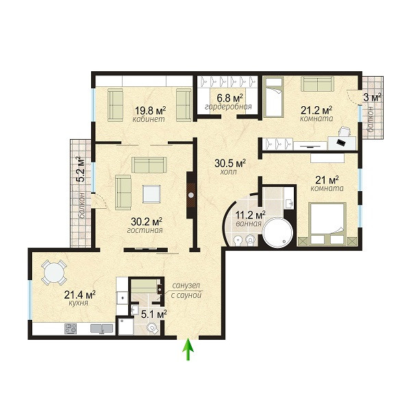 Планировка квартиры и ее оснащение включают в себя все, о чем можно мечтать: