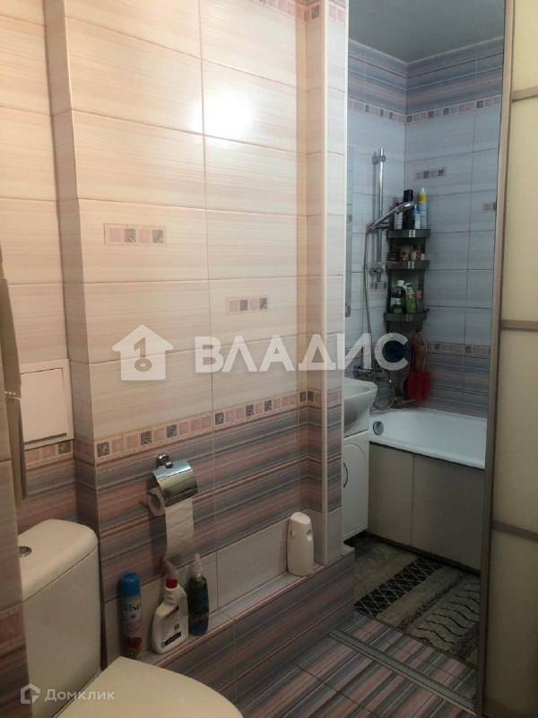 Санузел совмещенный (туалет, ванна), отделаны плиткой до потолка. Установлена большая ванна, раковина для умывания.