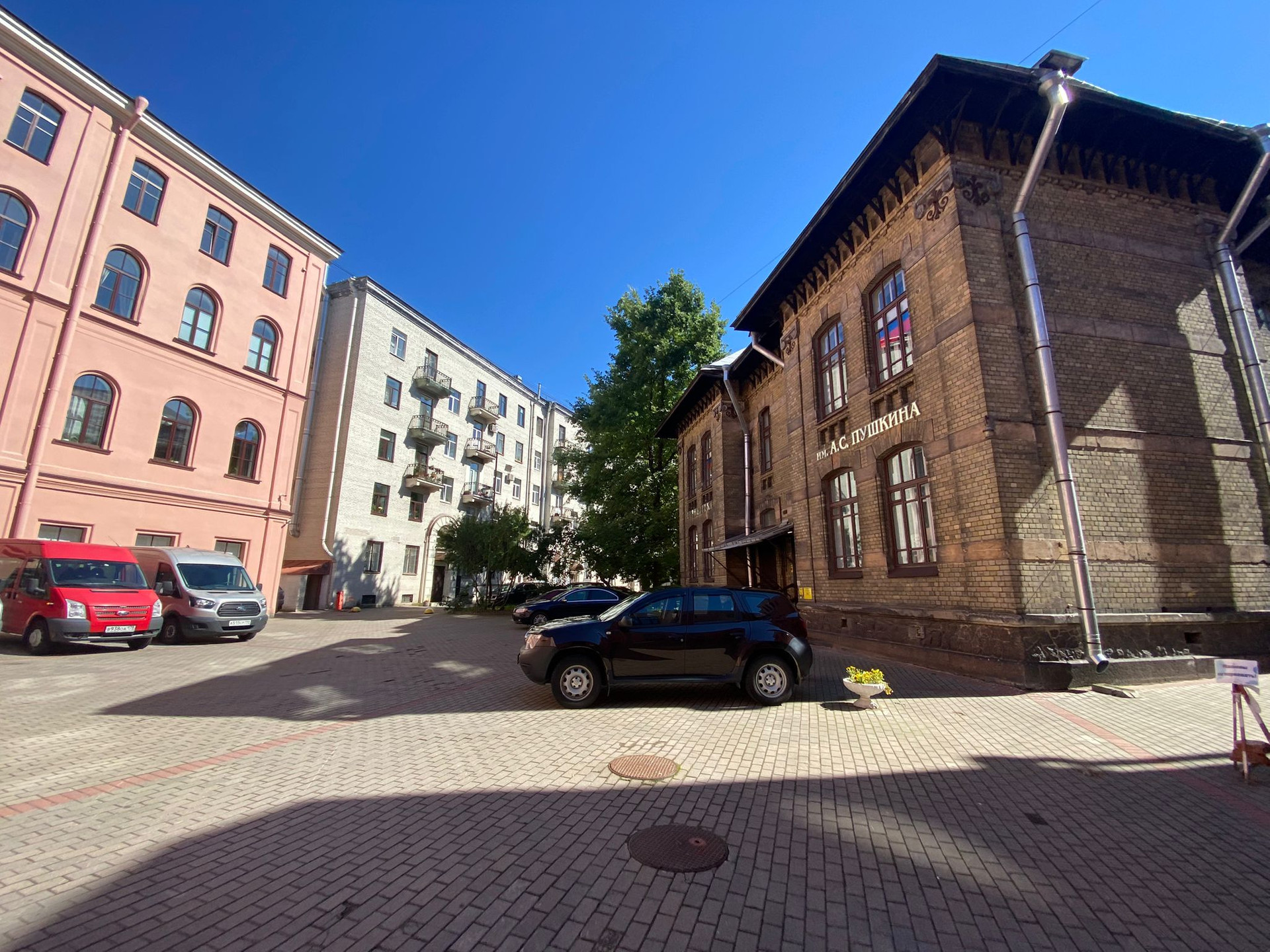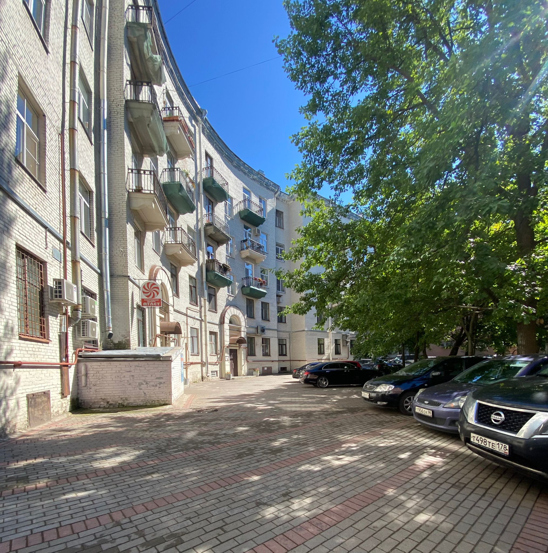 Дом находится на Каменноостровском пр. 34 в окружении зелени, уютного, тихого закрытого двора с парковочными местами для автомобилей, детской площадкой и баскетбольной площадкой.