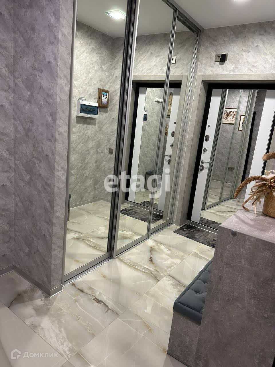 Установлена дорогая входная дверь с зеркалом. Пол, коридор кухня, ванна, лоджия итальянский керамогранит, комната, ламинат,