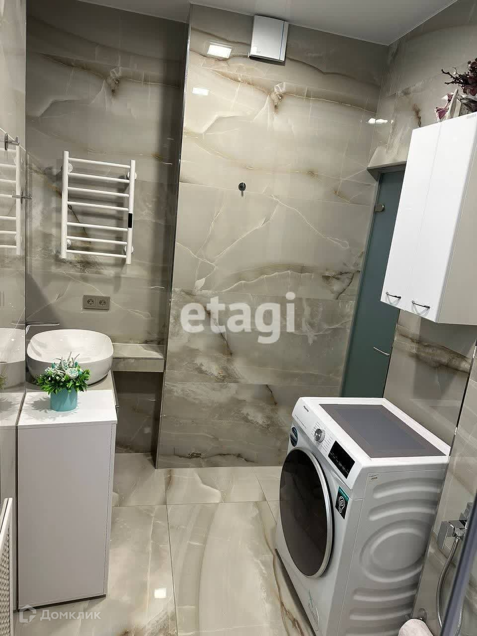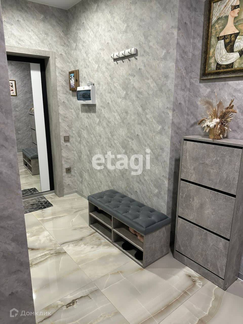 - керамогранит, стены - декоративный кирпич а также вместительный шкаф)