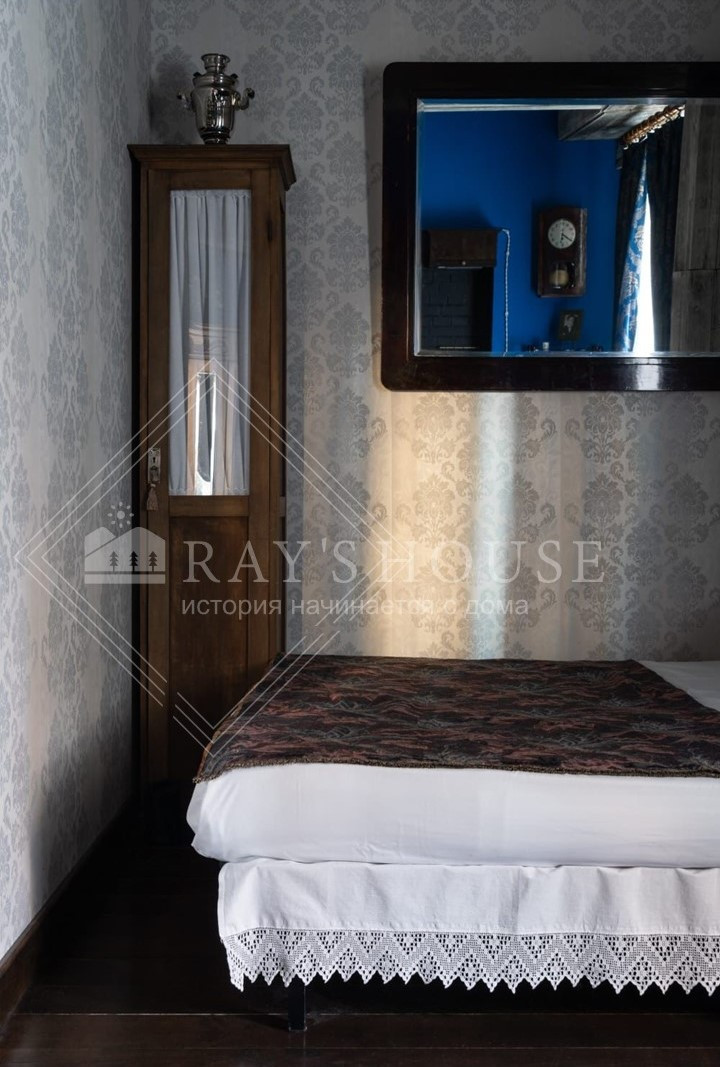 Подробнее об интерьере: Редкая антикварная кровать фабрики Б. Ароновичъ Варшава 1893г. Зеркало из правительственного вагона НКВД 1930 года, дореволюционный круглый стол из красного дерева, стулья братьев Конъ, светильники начало XX века, шкаф массив дуба начало XX века, чугунная ванна. Печь — копия «Або» финских печников и другие удивительные вещи (винтажная вешалка, довоенная этажерка, латунное бра, часы, патефон) каждая имеет свою историческую ценность, все это погружает и передает энергетику Петербурга прошлого столетия.