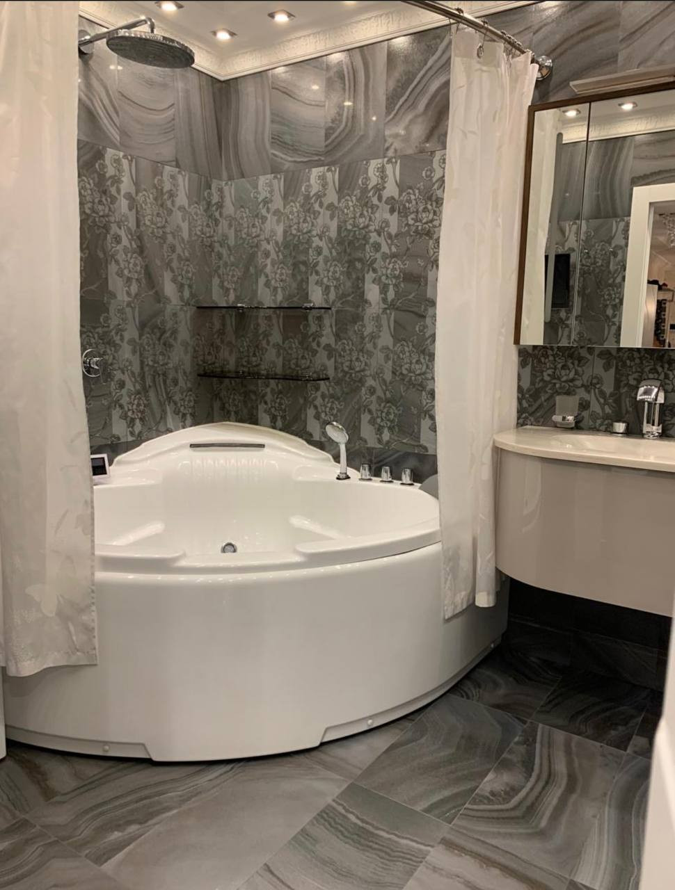 В каждой комнате сделана шумо изоляция, приточно-вытяжная система кондиционирования, электрические Шторы, тёплые полы. Техника вся miele. Стиральная, сушильная машина miele. Винный шкаф. Дорогое освещение. Лепнина по всей квартире. Ремонт выполнен очень качественно и дорого. Панорамные окна делают квартиру очень светлой. Светлая, просторная квартира на 9 этаже, высокие потолки 3,20м, окна в пол, Французские балконы по всей квартире, открытая терраса. Очень функциональная планировка. Мастер бедрум с огромной гардеробной и большой ванной комнатой, детская комната со своей ванной, гостевая спальня, светлая вместительная кухня-гостинная, широкий холл, гостевой туалет и большая техническая комната.