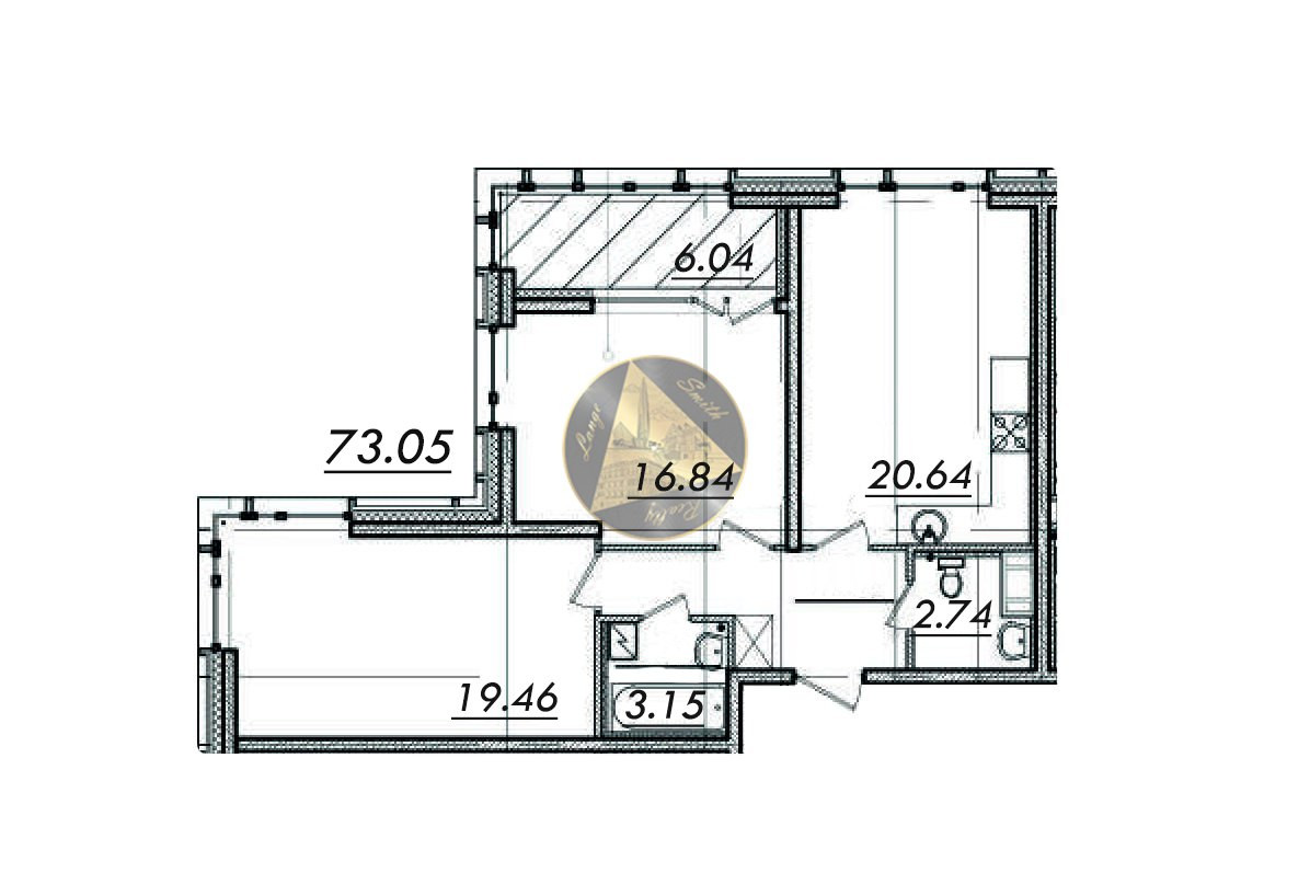 - Лоджия 6.04 м2.