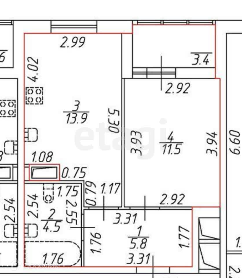 35.7 м2 + лоджия 3.4 м2