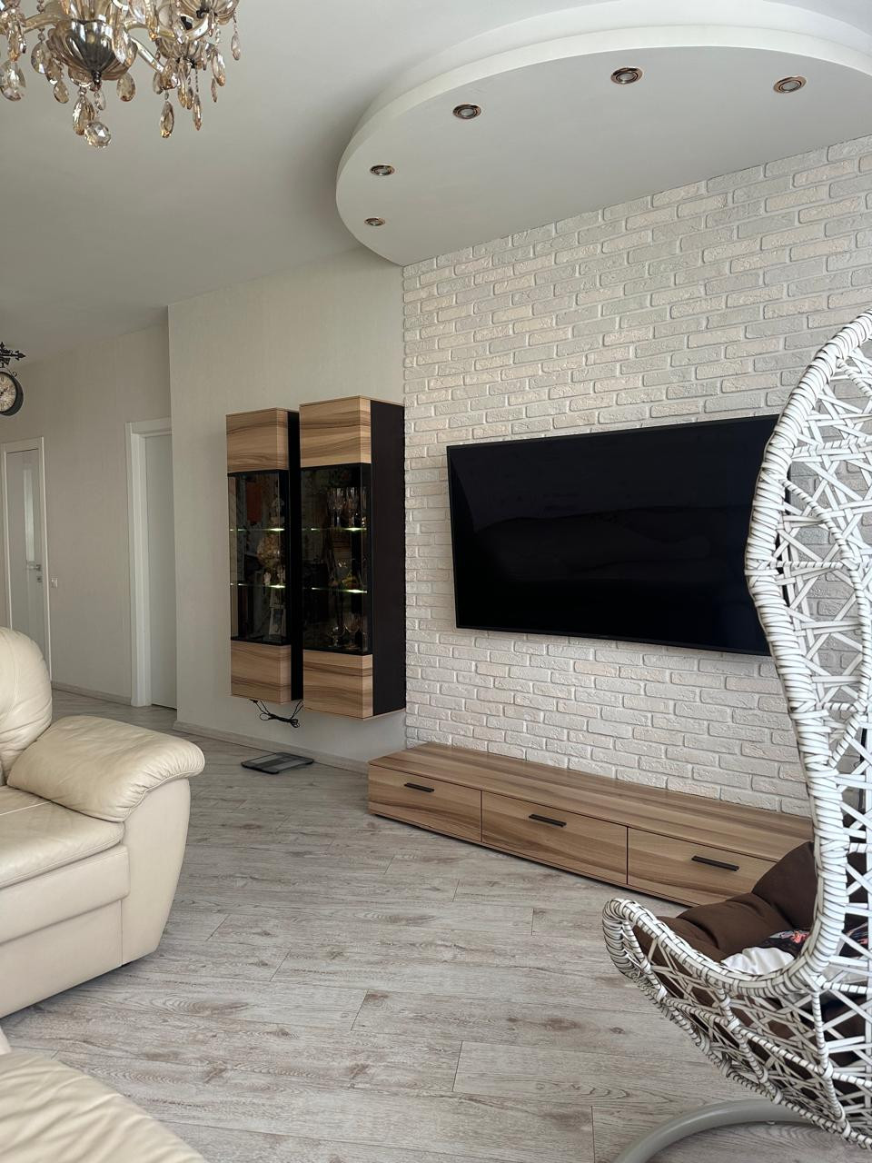 Модульная гостиная  "Дятьково", гардеробные "Эльфа", в спальне -кровать Ascona с подъемным механизмом и массажем.